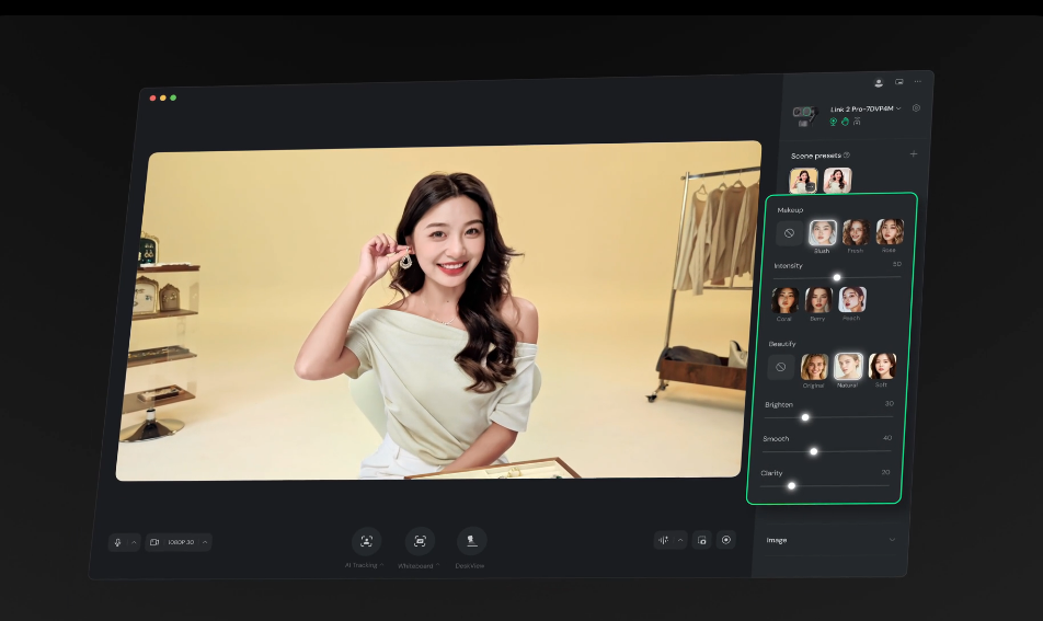 Save your preferred camera angle, effects, and AI features, then switch instantly between work, streaming, or creative setups.