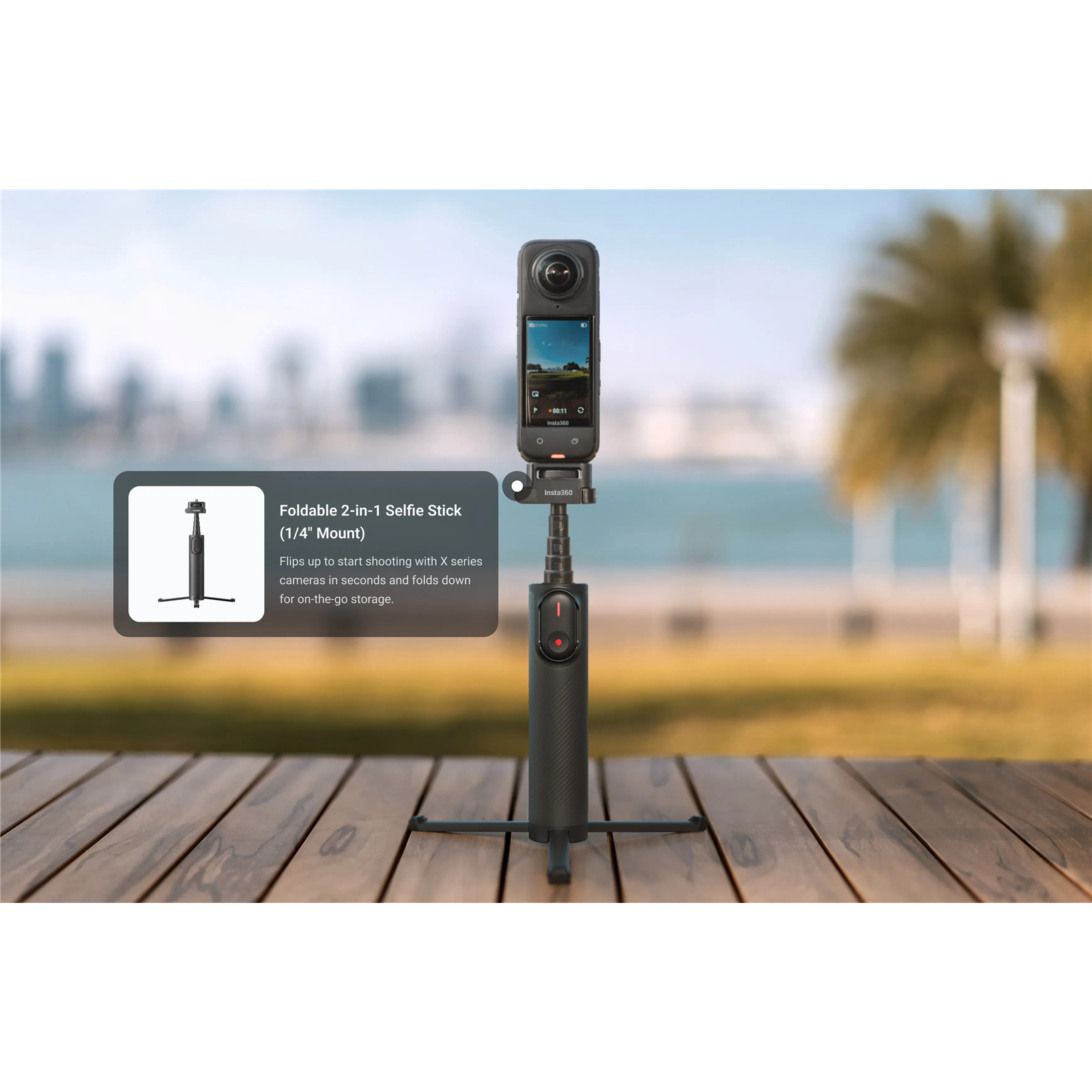 Insta360 X5 360° Waterproof 8K Action Camera Foldable Selfie Stick Bundle Includes 1x Insta360 X5 - 1x Lens Cap - 1x Foldable 2-in-1 Selfie Stick (1/4" Mount)