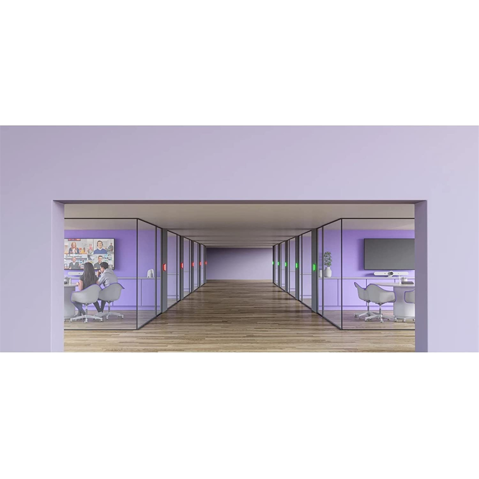 Quickly find an open room through colored LED lights that show availability at a distance.