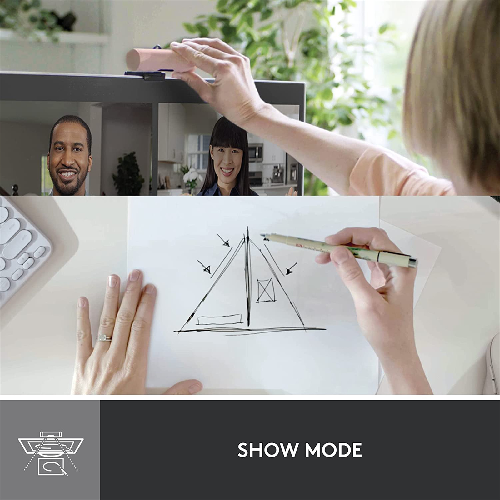 Use the innovative new Show Mode to tilt the camera down and present sketches, work in progress, and other objects on your desk. The included mount features a micro-suction pad that secures the webcam to the back of your monitor, allowing you to make quick adjustments with one hand. Download Logi Tune for free to enable Show Mode.