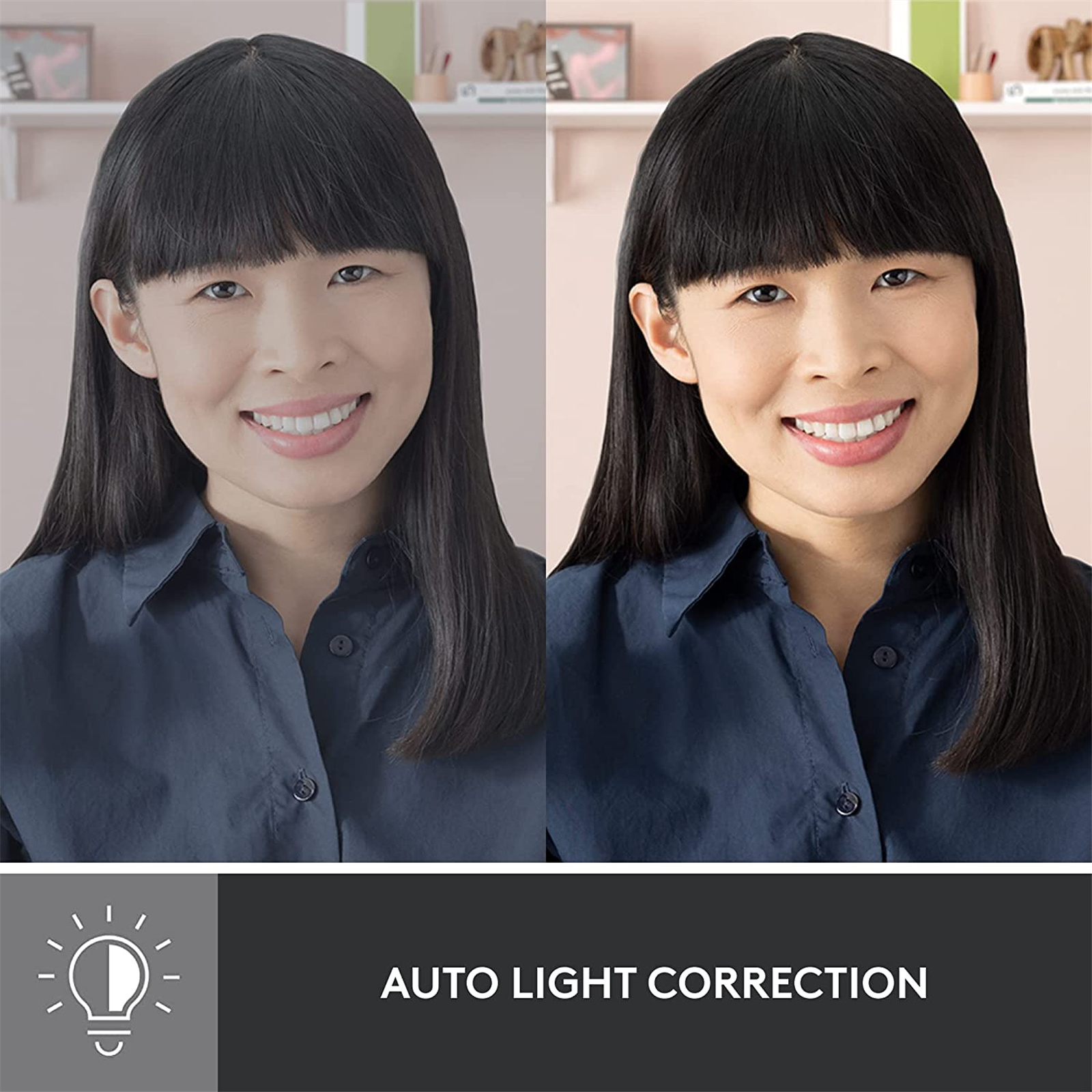 Collaborate better with high resolution and basic auto light correction. RightLight 2 automatically adjusts to compensate for challenging light conditions so you look clear on video calls.
