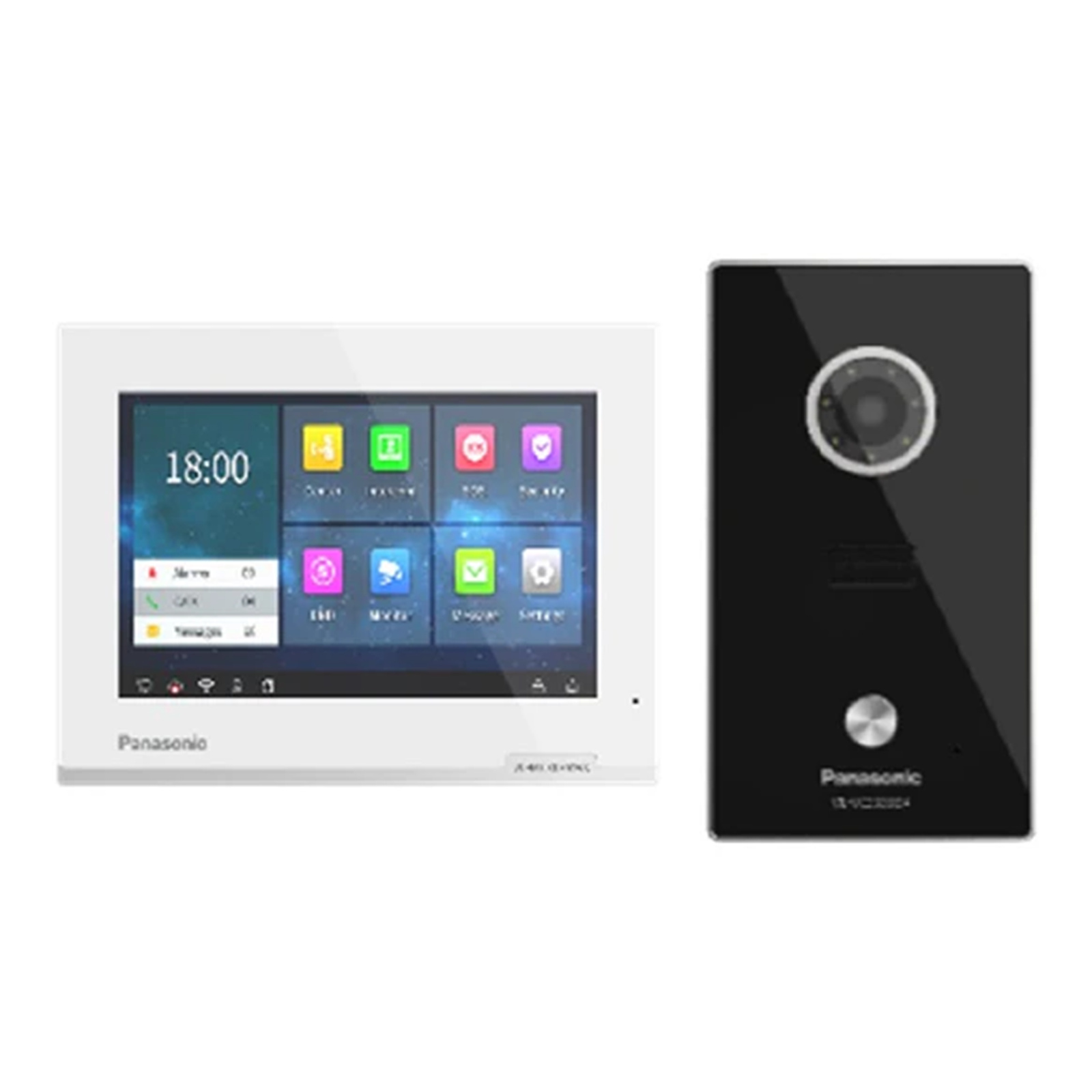 Panasonic VL-SWD272AZ video intercom system consists of 7-inch wide colour / WVGA (800 x 480 pixels) monitor, 2.2-inch wide colour / QVGA (320x240 pixels) DECT wireless handset and door station.