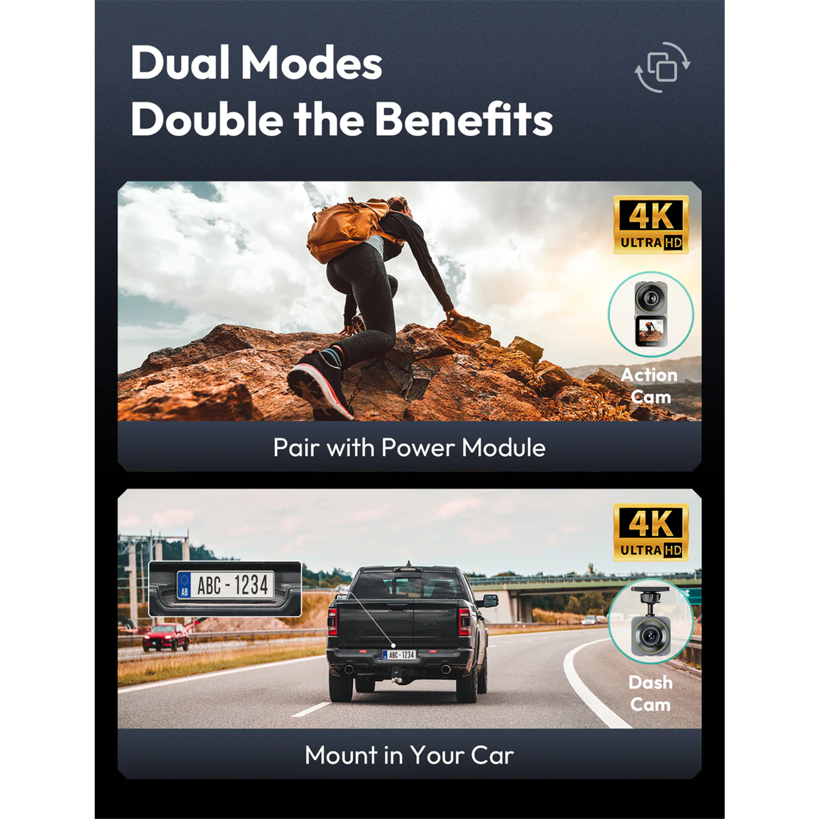 The Botslab V9H is a 2-in-1 device that combines the functionality of a car camera and an action cam. With 4K recording, dual screen, image stabilization and intuitive voice control, the product offers exceptional image quality and ease of use both on and off the road. Its modular, compact design, harsh weather resistance and long operating time make it an ideal choice for drivers and outdoor adventure enthusiasts alike.