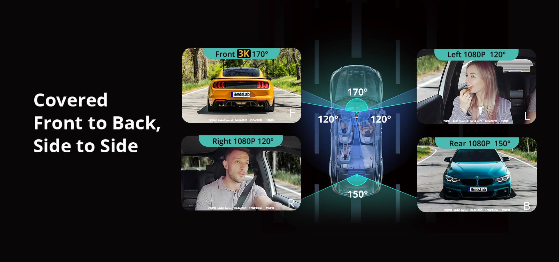 BOTSLAB G980H 3K 4 Channel Dash Cam, 3K Front and 1080p*3 Car Camera Left Right Inside,