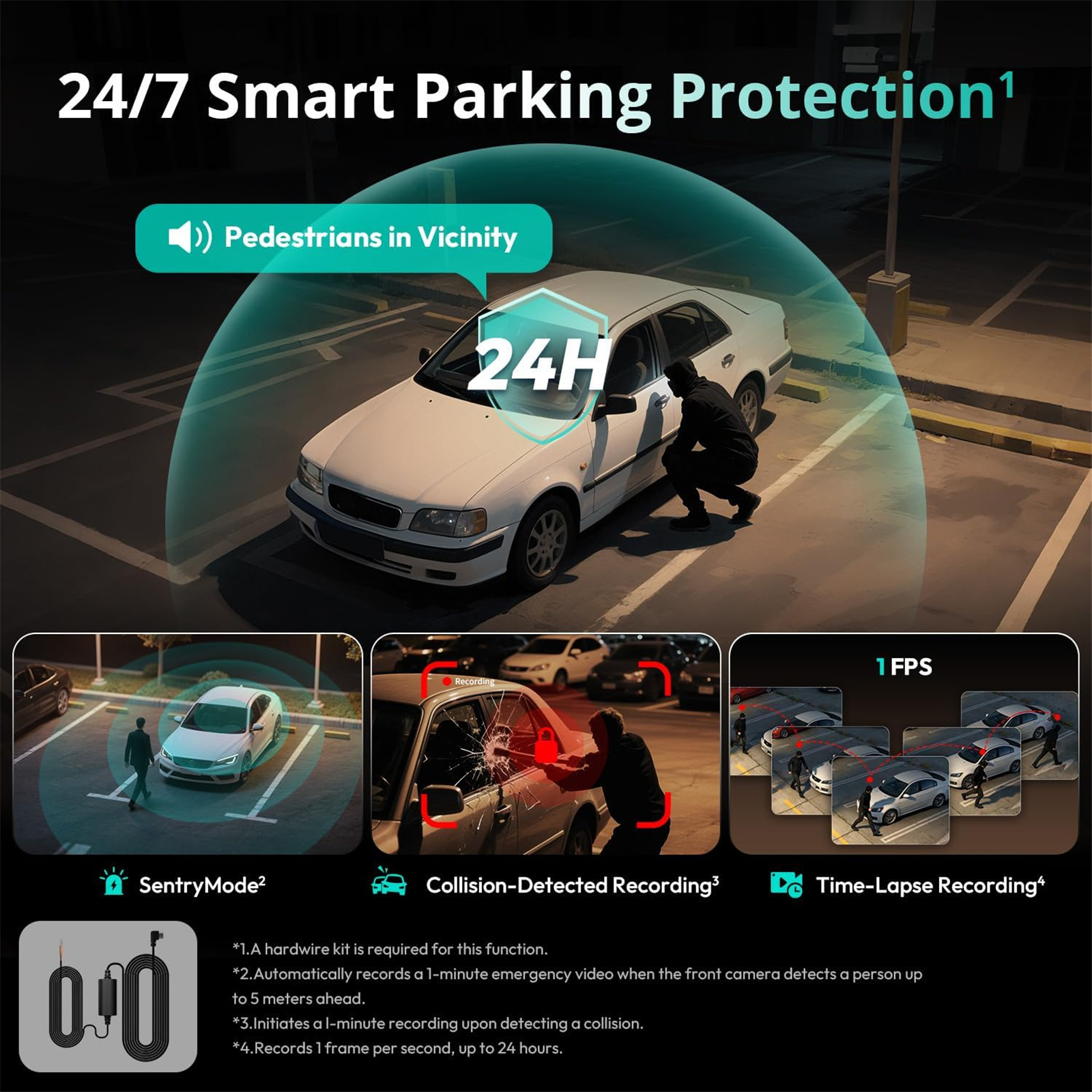 *Please note: To use parking mode, connection to the Botslab hardwire kit is required. Parking mode cannot be switched on or off manually.