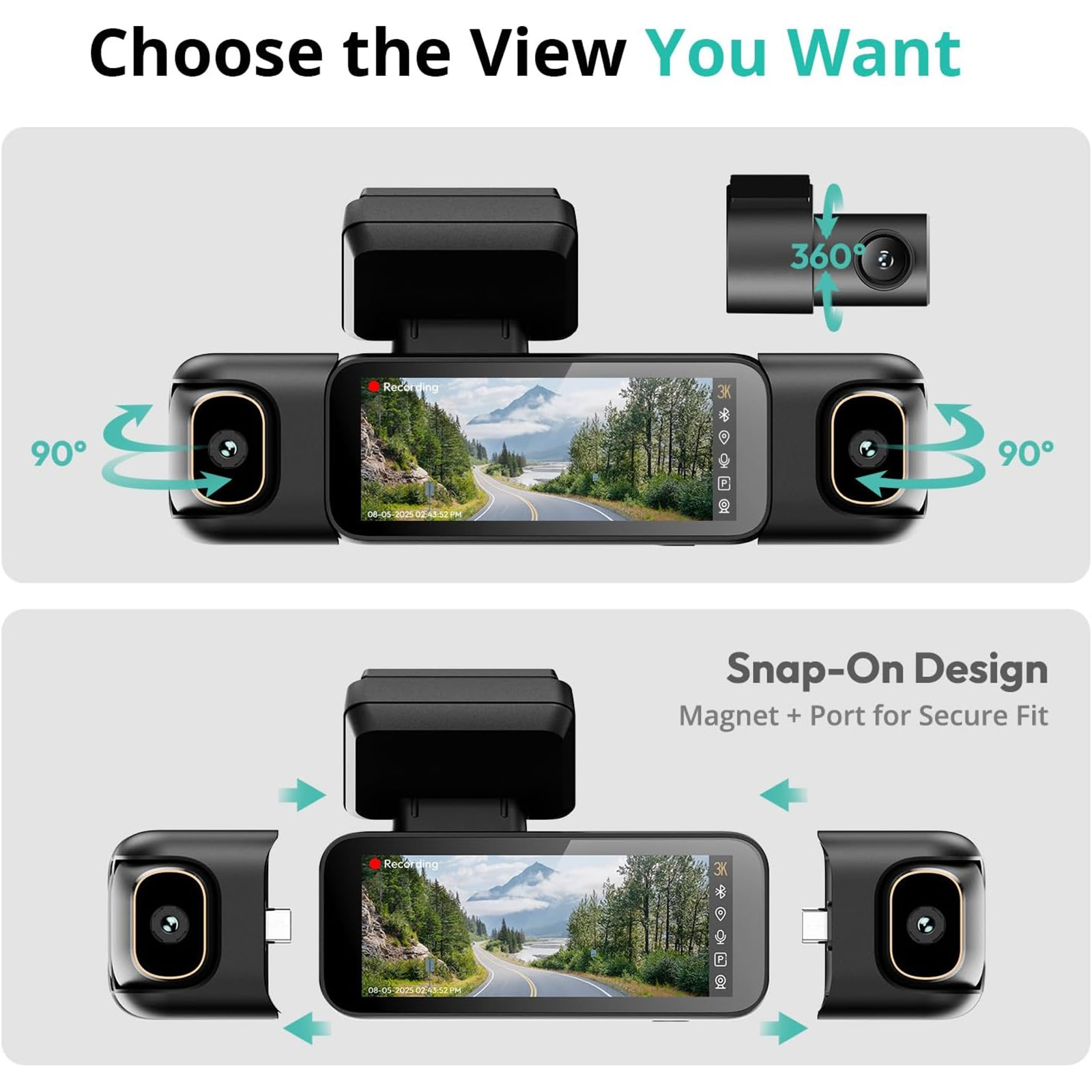 560° Dash Cam for Car, Built-in 5.8GHz WiFi and GPS, Voice Control, Included 128GB SD Card