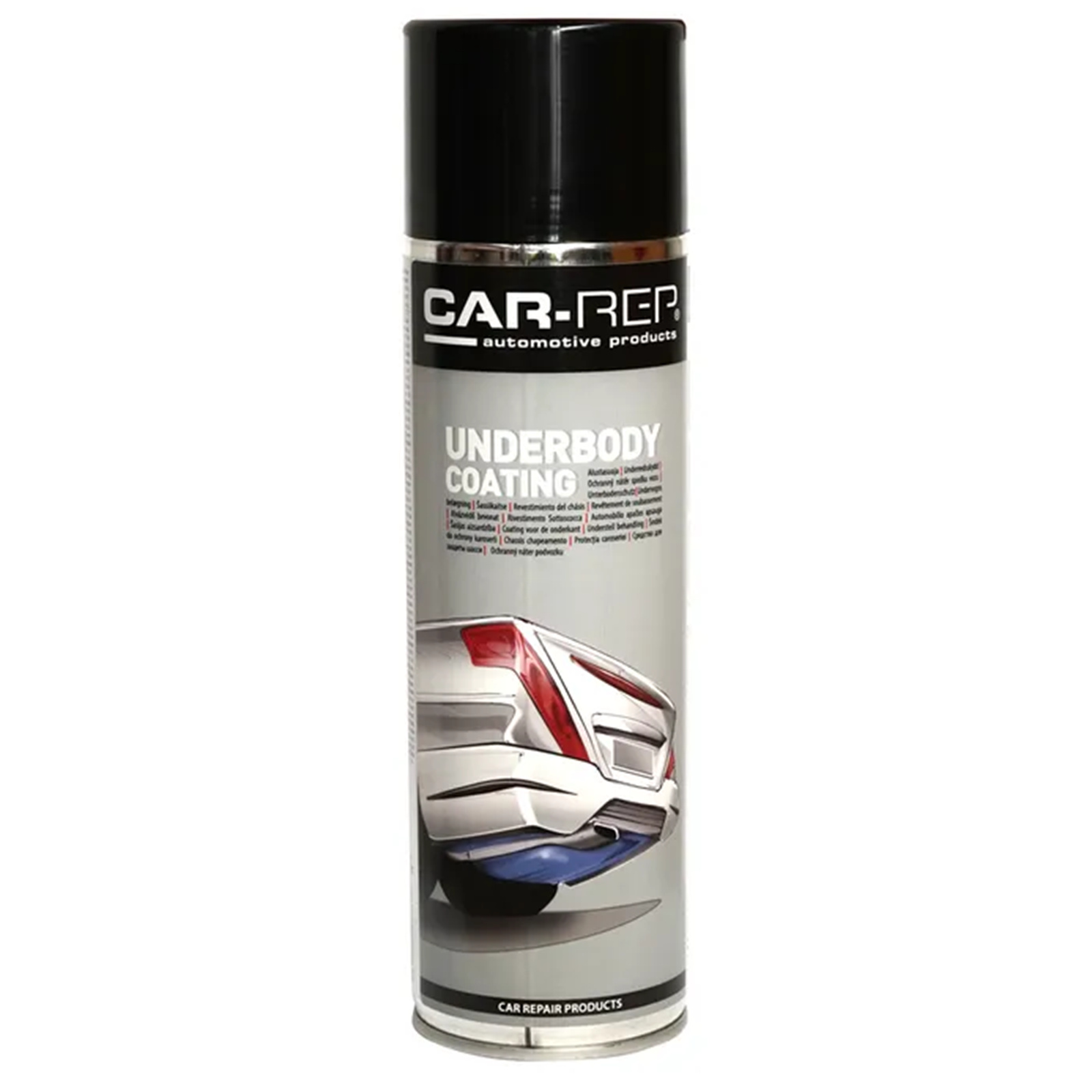 CAR REP UNDERBODY COATING SPRAY is a quick-drying bitumen-based protector for your car's chassis. It is flexible, hard-wearing, and provides excellent protection against rust.