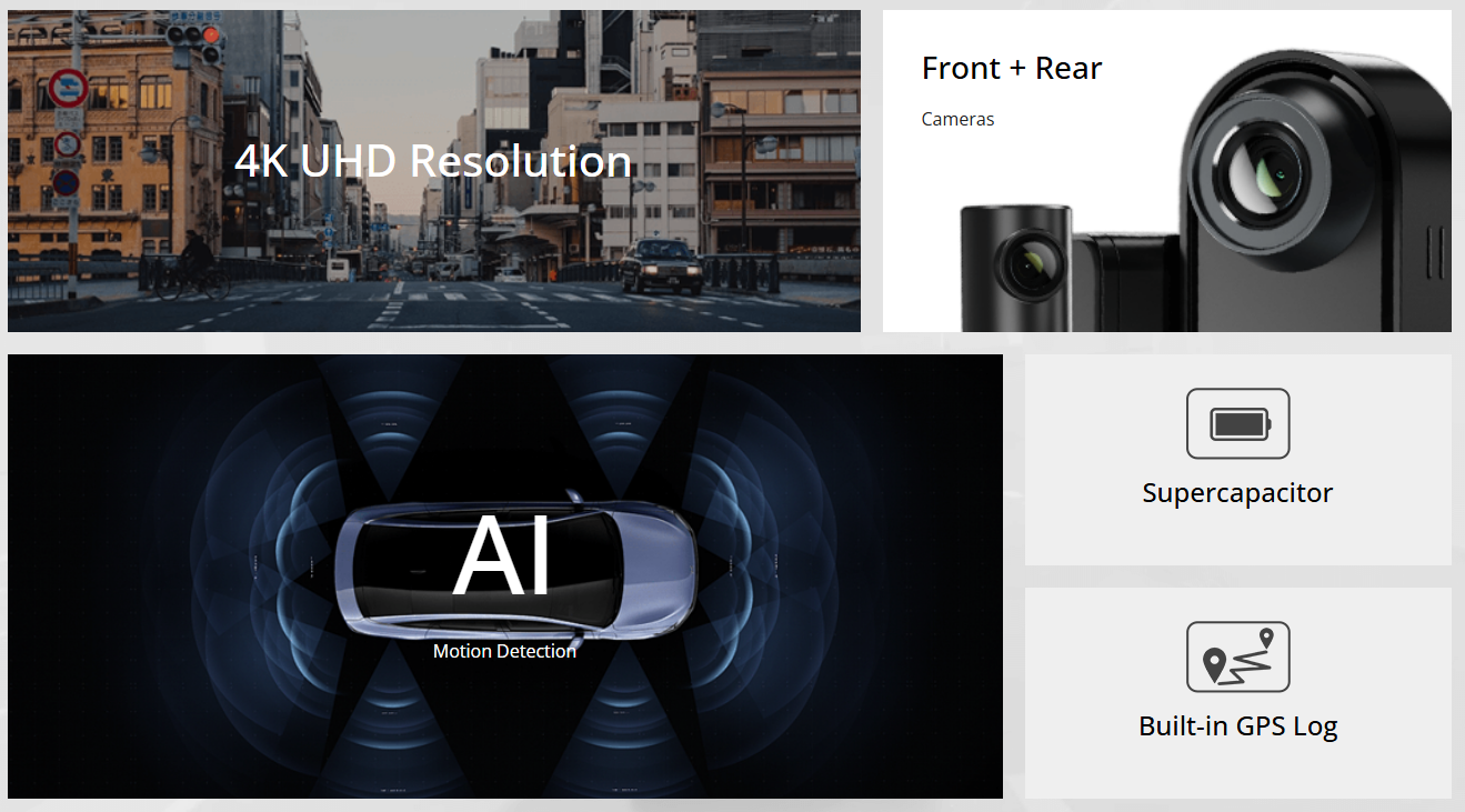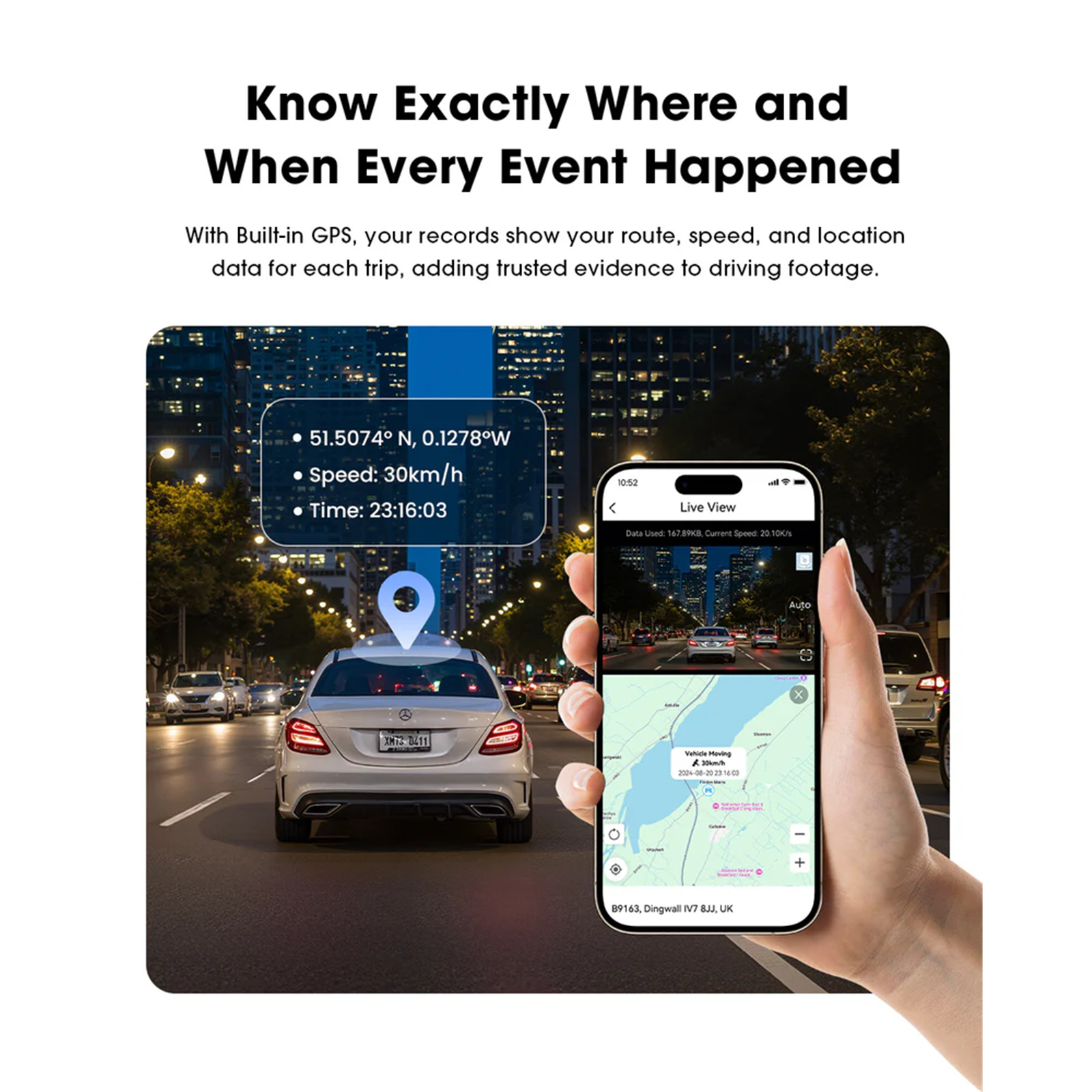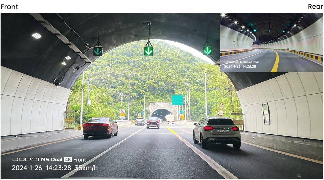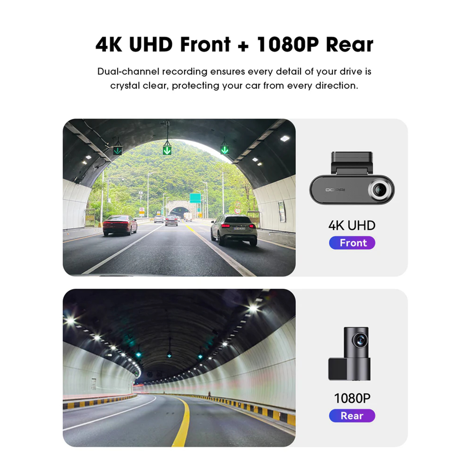 N5 Dual is the ultimate driving companion, toaturing a 4K HDR front camera at 30fps and a 1080p rear camera, ensuring crystal-clear coverage in any light condition.