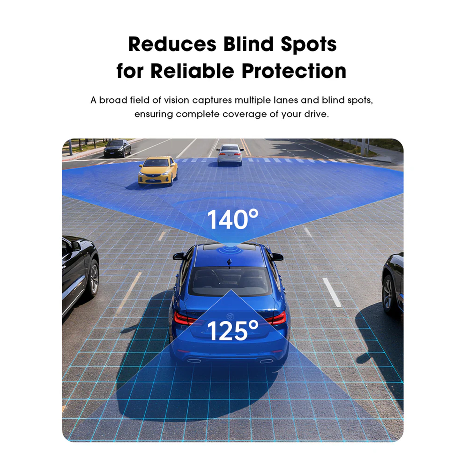 - 140° Wide-Angle Vision: Capture more, drive safer