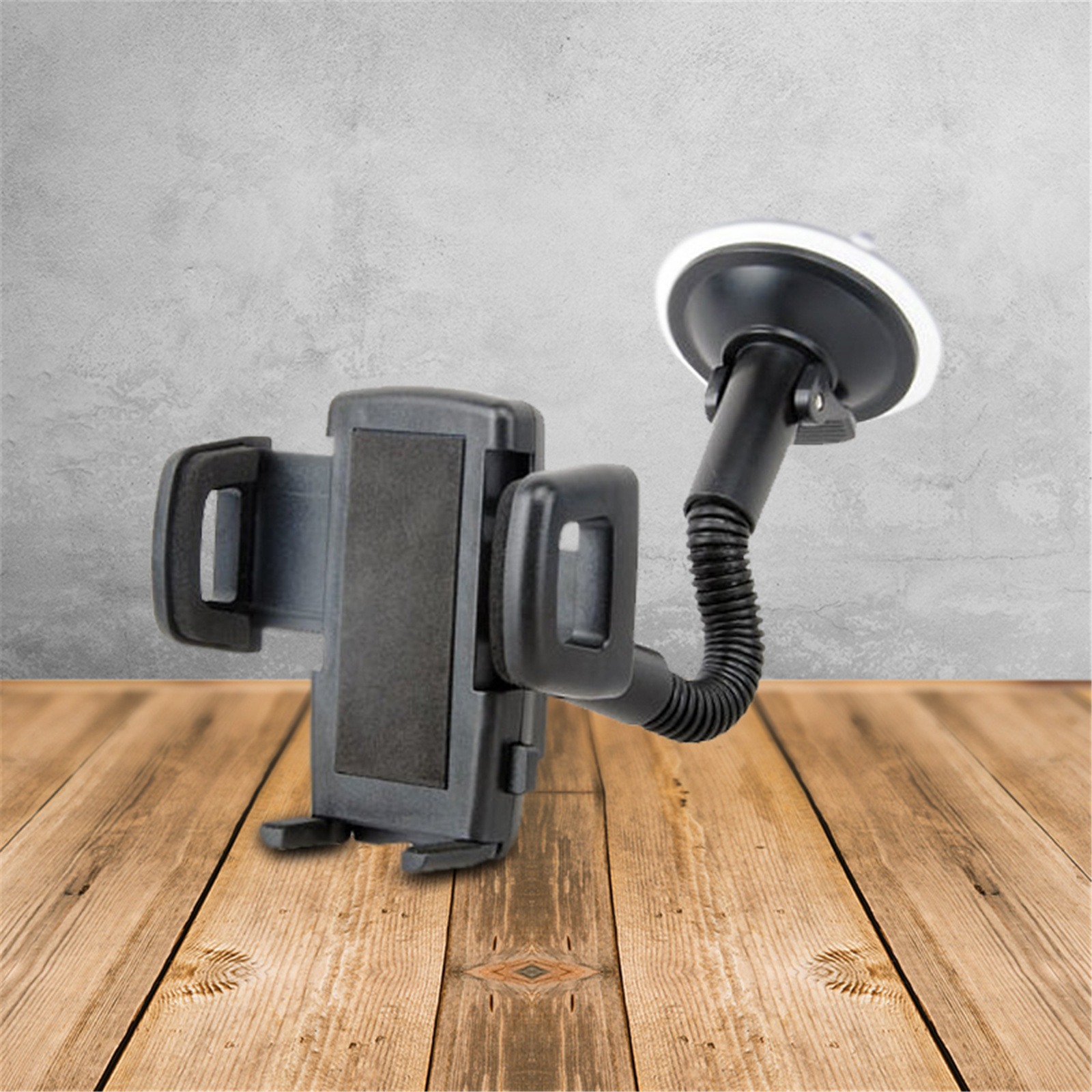 Universal phone holder with windscreen suction mount and gooseneck arm