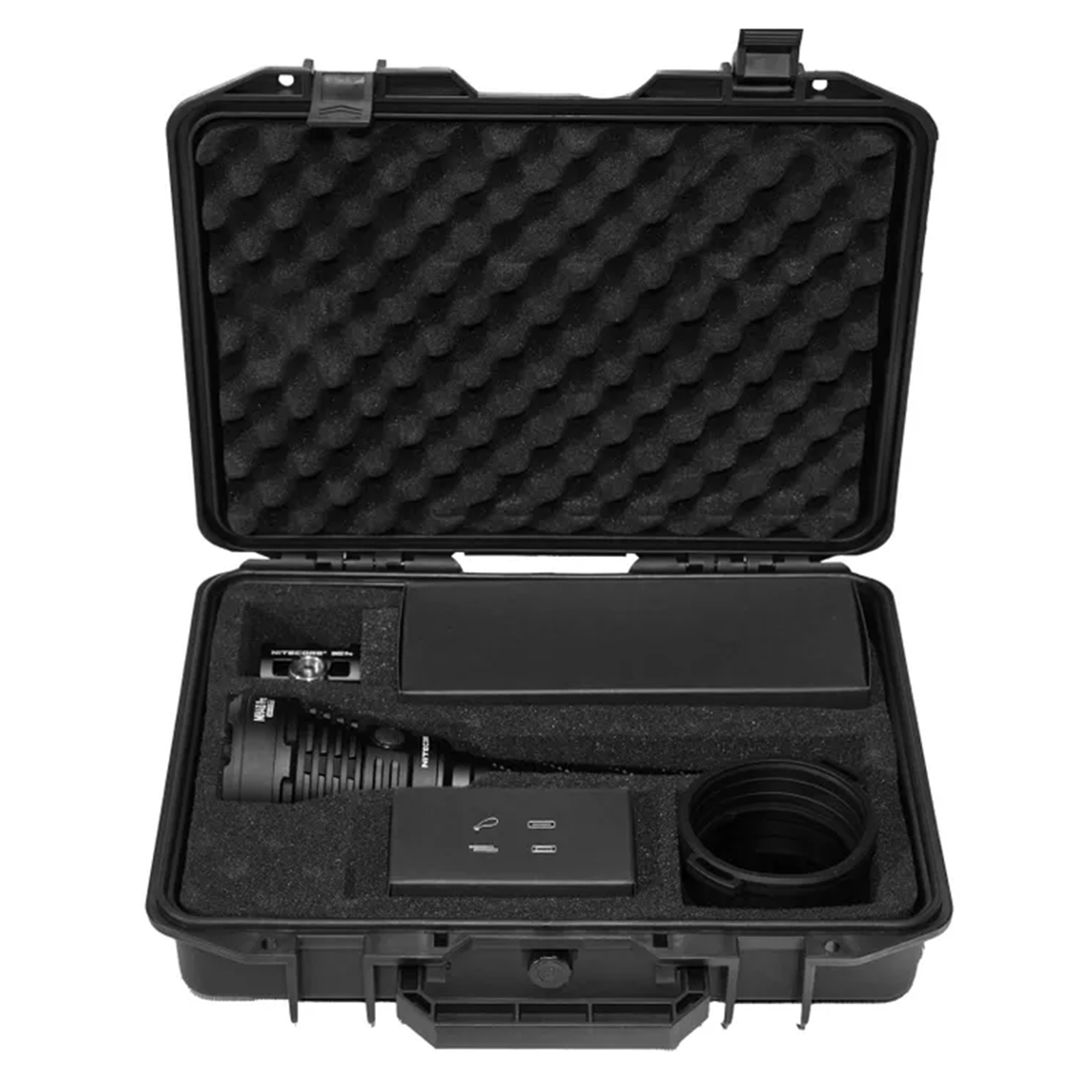 A NITECORE NBP100R rechargeable Li-ion battery pack is included that fits snugly without rattling inside the flashlight. Equipped with a USB-C charging port, it can also double as an emergency power supply.
