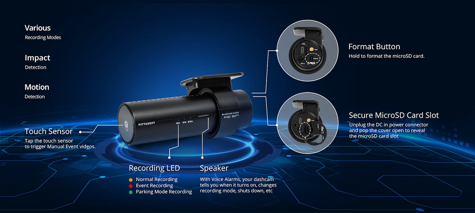 Packed With Innovative Features Live View, Emergency Alarm, GPS Tracking,Two-way Voice Communication, Video Backup, Remote Video Playback, the possibilities are endless. BlackVue Over the Cloud is all about using your dashcam to its full potential, so that you and your car are always connected.