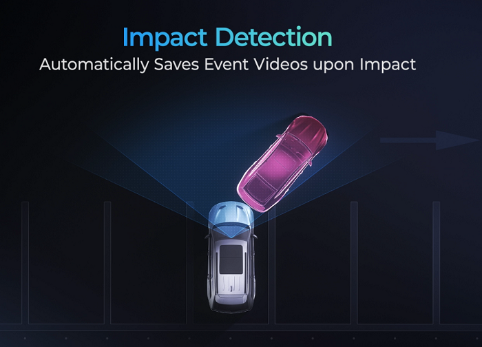 Detects and records driving impacts, parking impacts, sudden acceleration, hard braking, sharp turns, and overspeeding using the built-in G-Sensor and GPS.