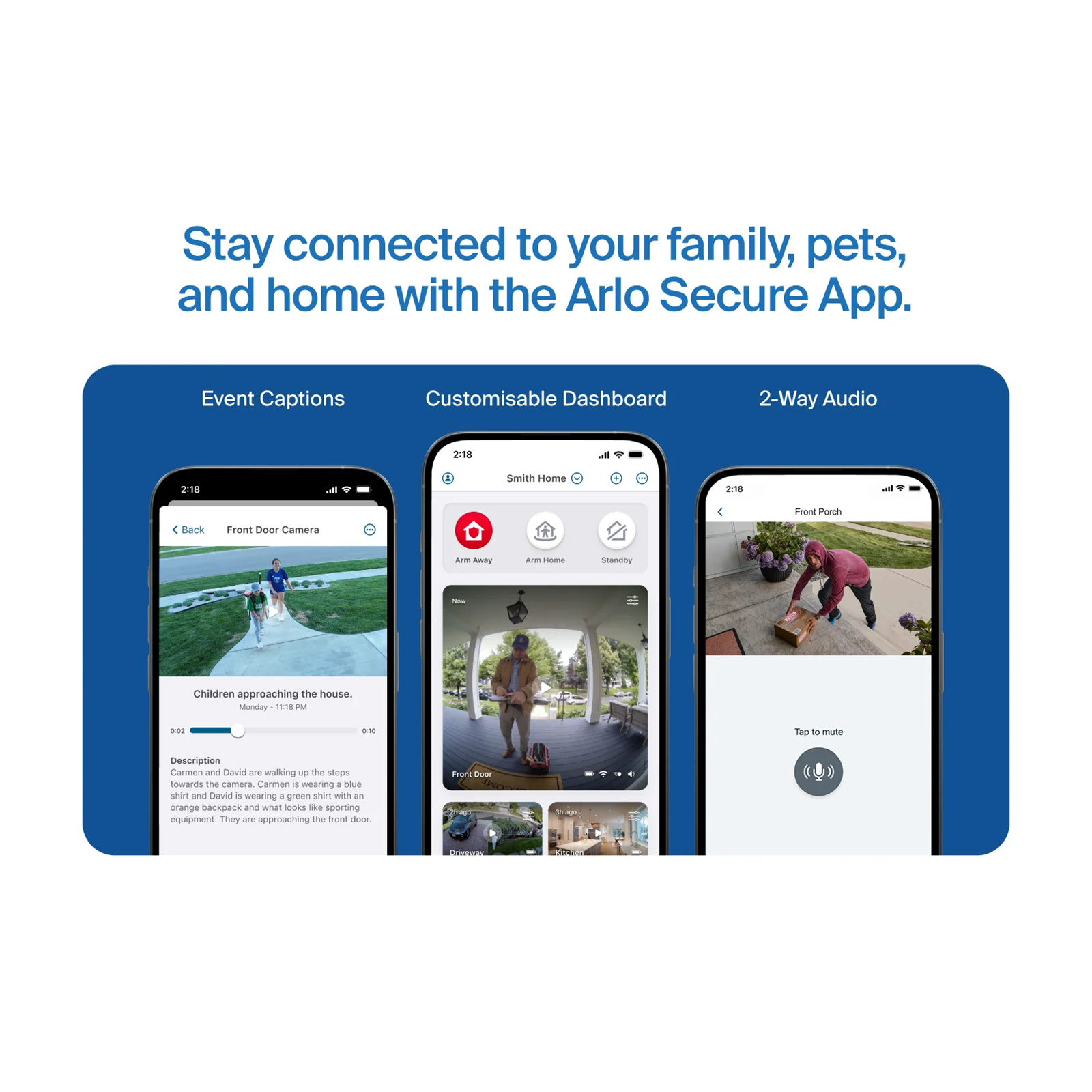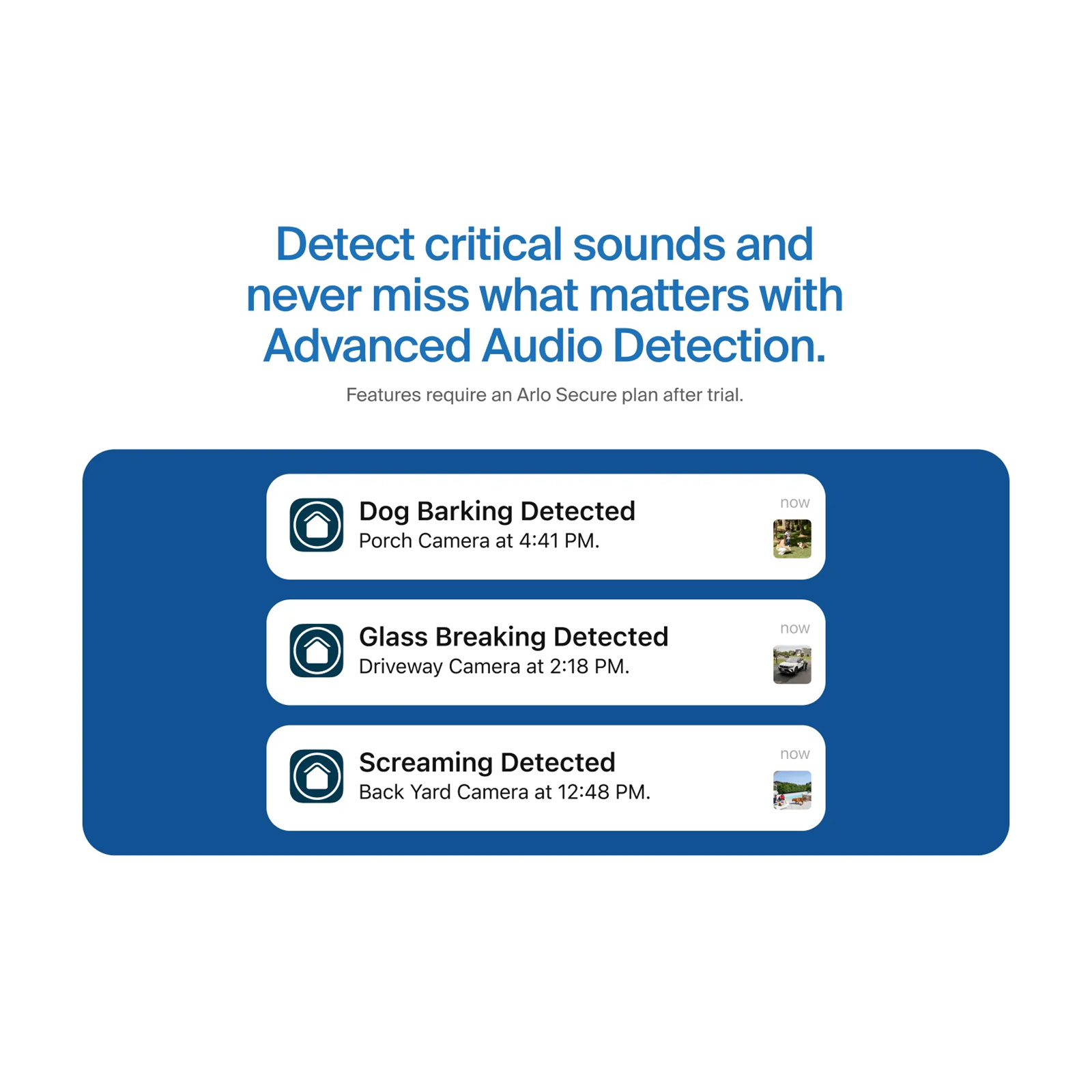 We continually innovate and elevate your protection with Arlo Secure plans built with AI-powered features that deliver precise alerts with key information. You'll have complete awareness of what's happening on your property and be able to make critical security decisions immediately.