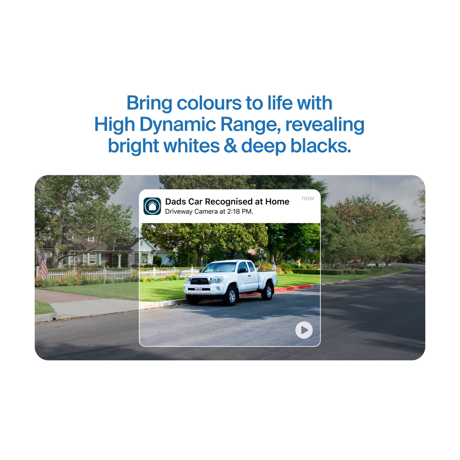 With 160° Field of View and 2K High Dynamic Range (HDR) video, the Arlo Pro 6 delivers the brightest whites and darkest blacks, revealing crucial details like shirt colour, make & model of a car, and facial features.