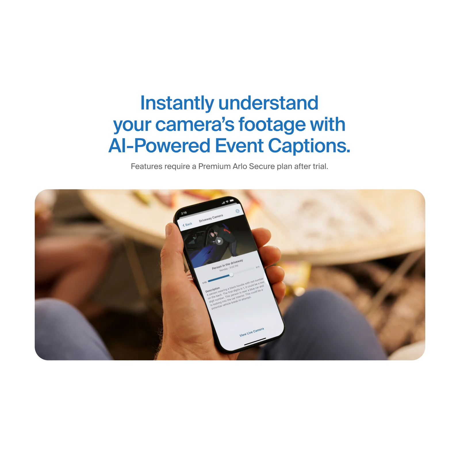 We continually innovate and elevate your protection with Arlo Secure plans built with AI-powered features that deliver precise alerts with key information. You'll have complete awareness of what's happening on your property and be able to make critical security decisions immediately.