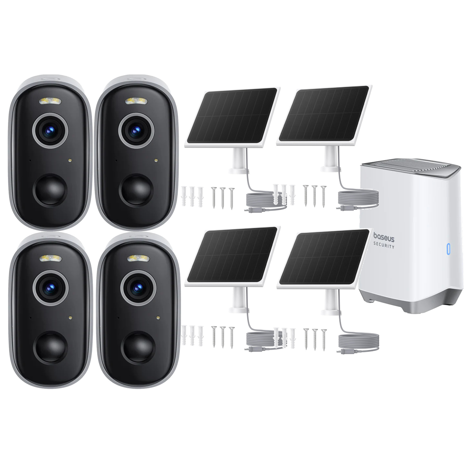 Baseus Security N1 Plus 3MP/2K Outdoor Wire-Free Camera with Homebase & Solar - 4 Pack 9600mAh / FOV:145° / Human/Zone detection