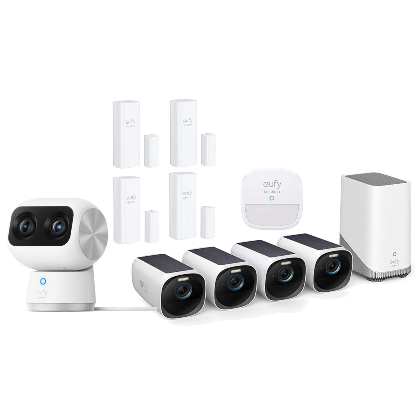 Include Homebase 3 / 4x EufyCam 3 (S330) / 1x Eufy Indoor Cam (S350) / 4x Eufy Entry Sensors / 1x Eufy Motion Sensor