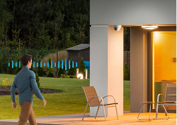 Enjoy two-way communication by simply using your phone. Or, pre-record specific voice messages that automatically play when people are detected on camera.