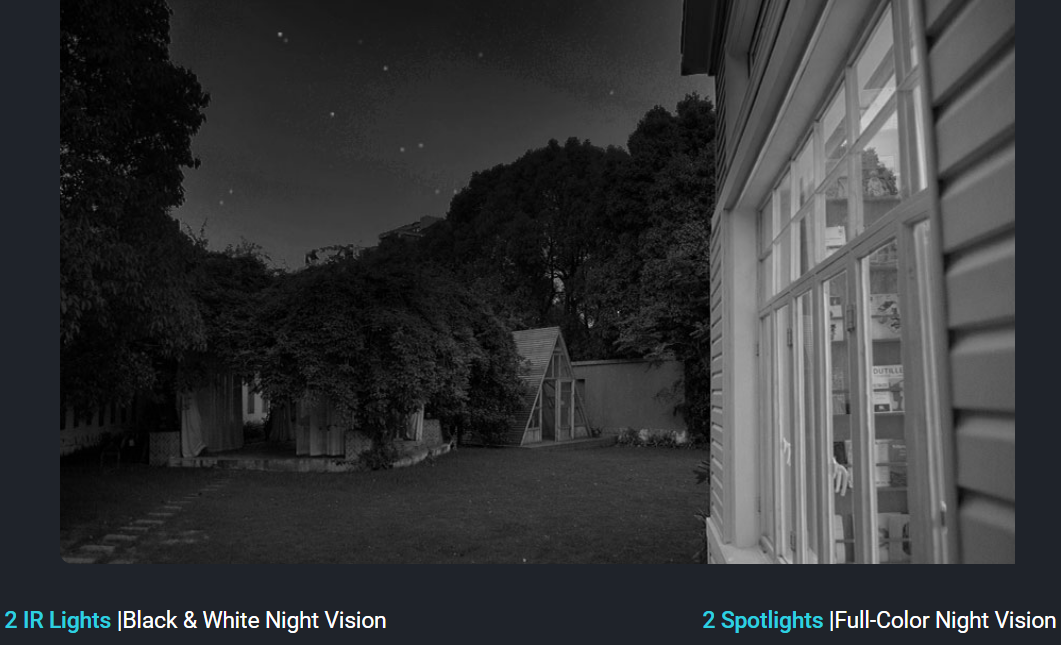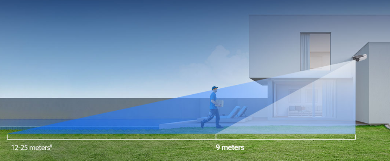 Upon detection of intruders, the camera will set off a loud siren and flash two dazzling spotlights⁹ to let the invited strangers know they have been detected.