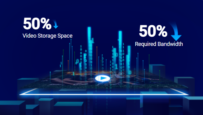 The H.265 creates a smoother viewing experience while only using about 50% of the data storage space required by cameras with H.264.