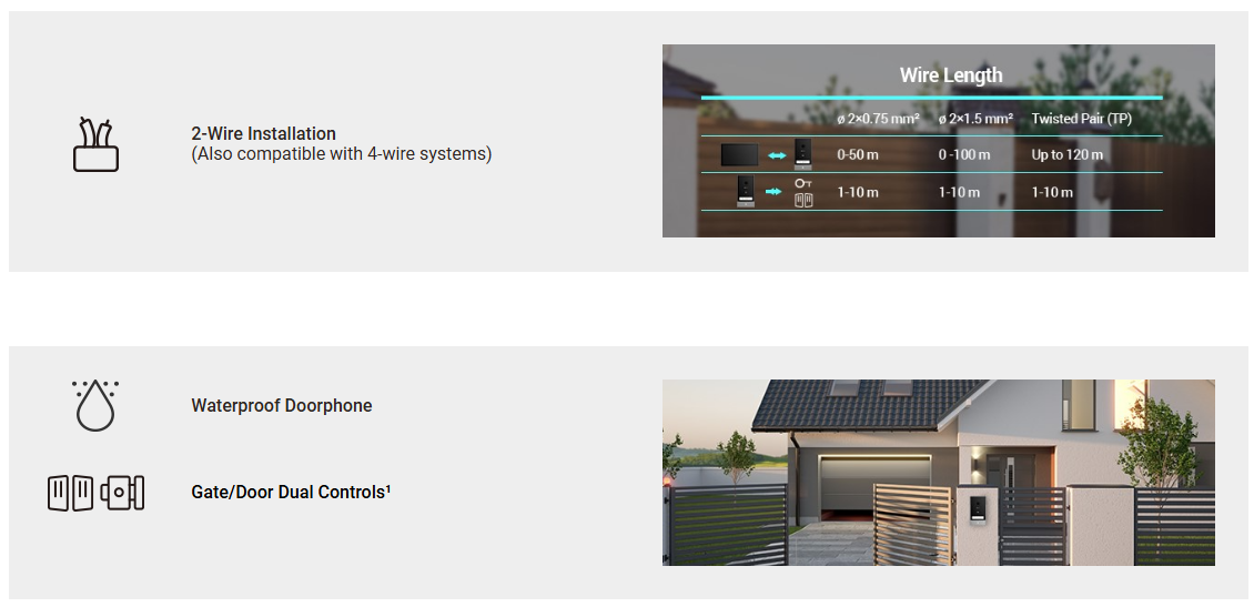 The HP7 is ideal for anyone who seeks to replace their bulky intercom in a renovated home, or for those who are moving into a spacious villa and need convenient communication and confident security. This stylish kit combines a 2-in-1 outdoor video doorbell with a large indoor monitor and easily fits any home style.