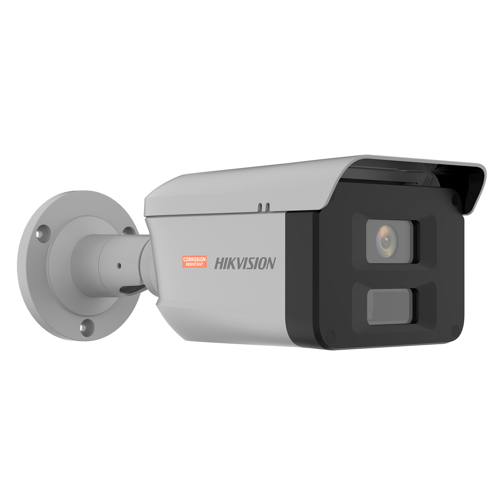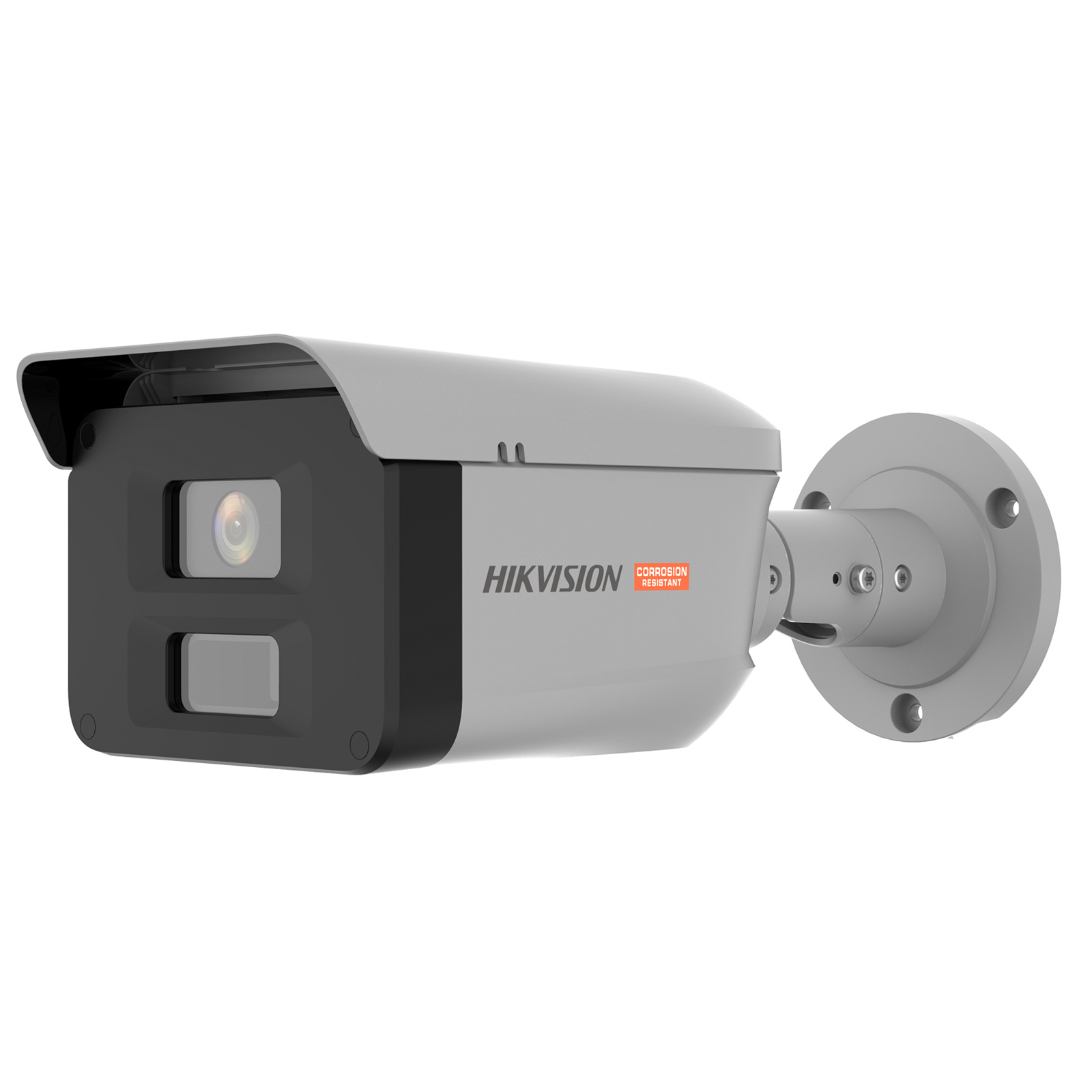 A fixed 2.8mm ColorVu bullet delivers 4MP full-color imaging day and night, even under extremely low light, with a specialized anti-corrosion polymer housing built for harsh, corrosive environments.