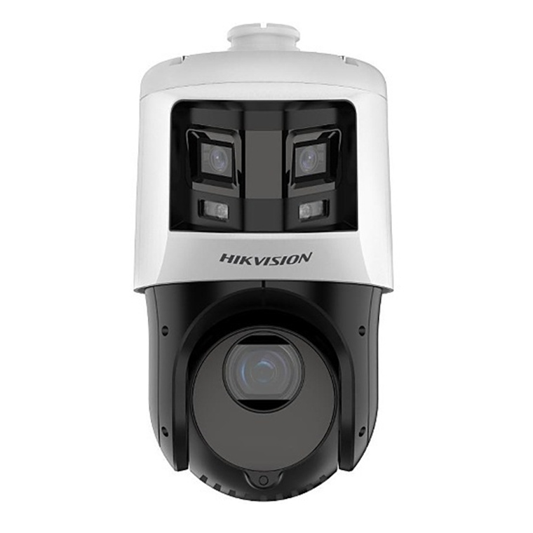 This camera features both a 6MP panoramic channel for broad area overviews and a 4MP PTZ channel with 25× optical zoom for capturing fine details-effectively combining wide scene coverage with focused inspection.