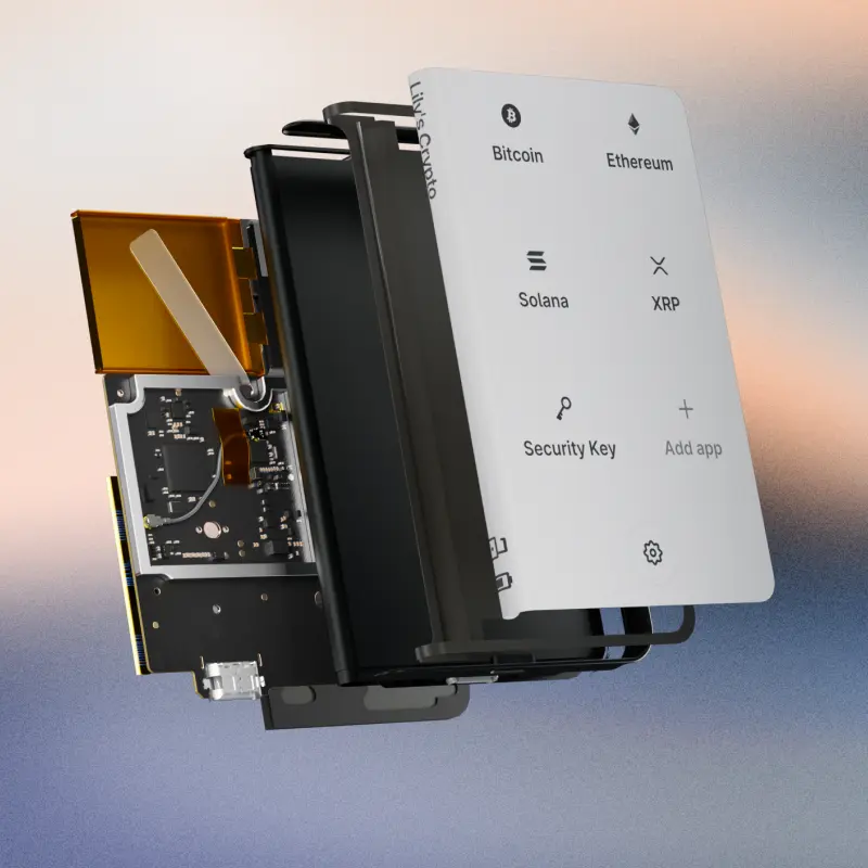 Powered by the industry-leading Secure Element chip, Ledger OS™, and a secure screen.