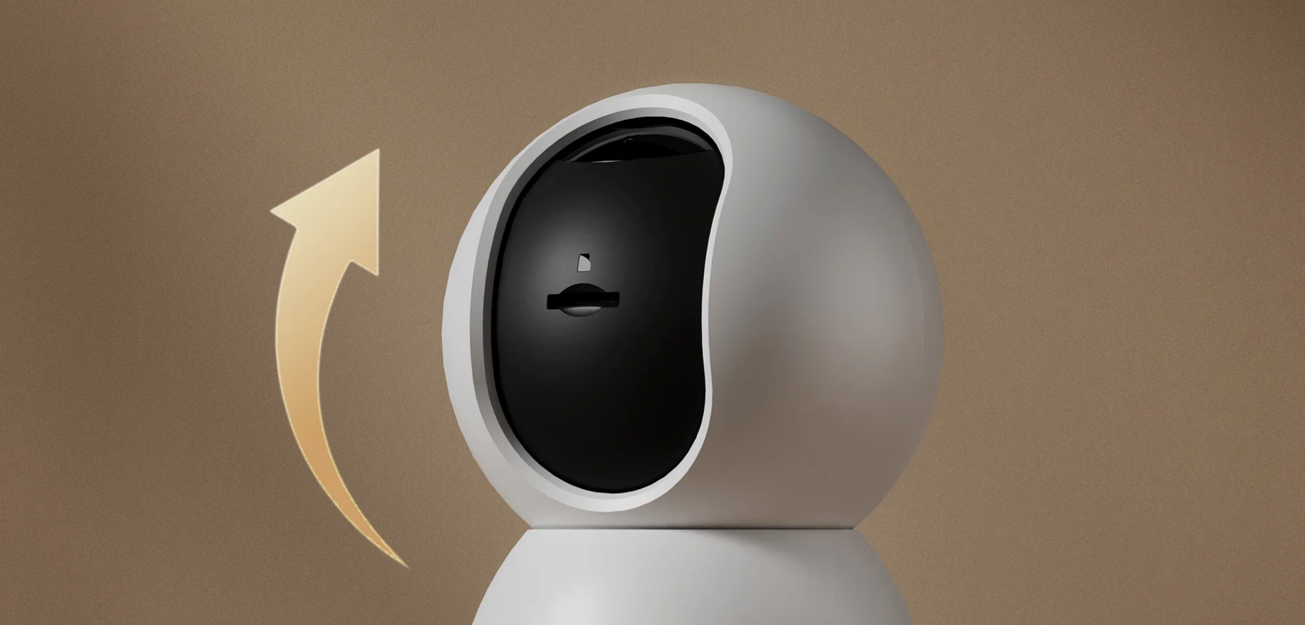 The camera supports physical privacy masking, allowing the lens to tuck upward into the camera body to physically block it, ensuring your security and peace of mind.