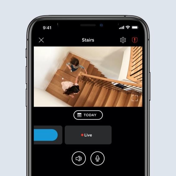 Check in on home at any time from anywhere, and get real-time video and audio with the Live View button.