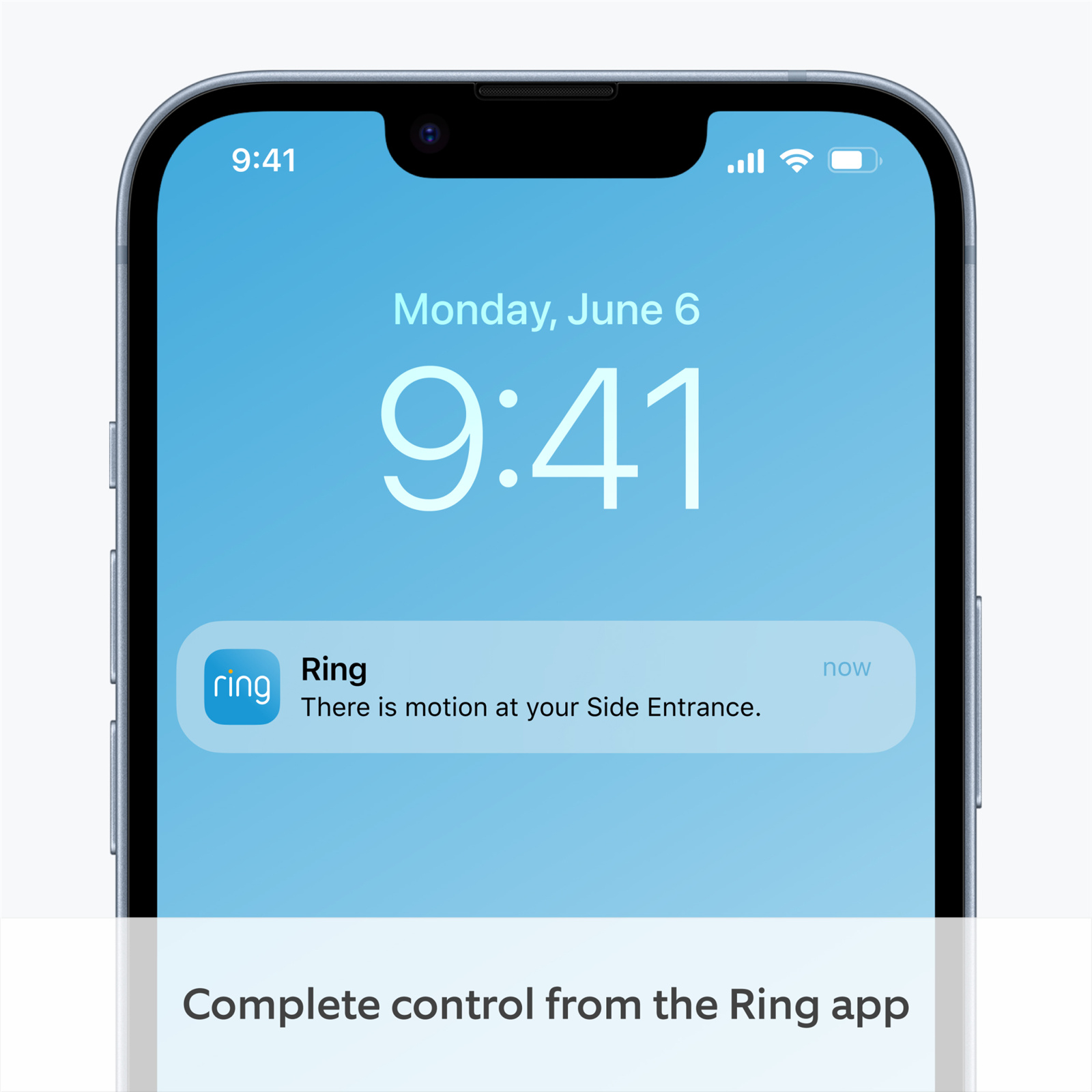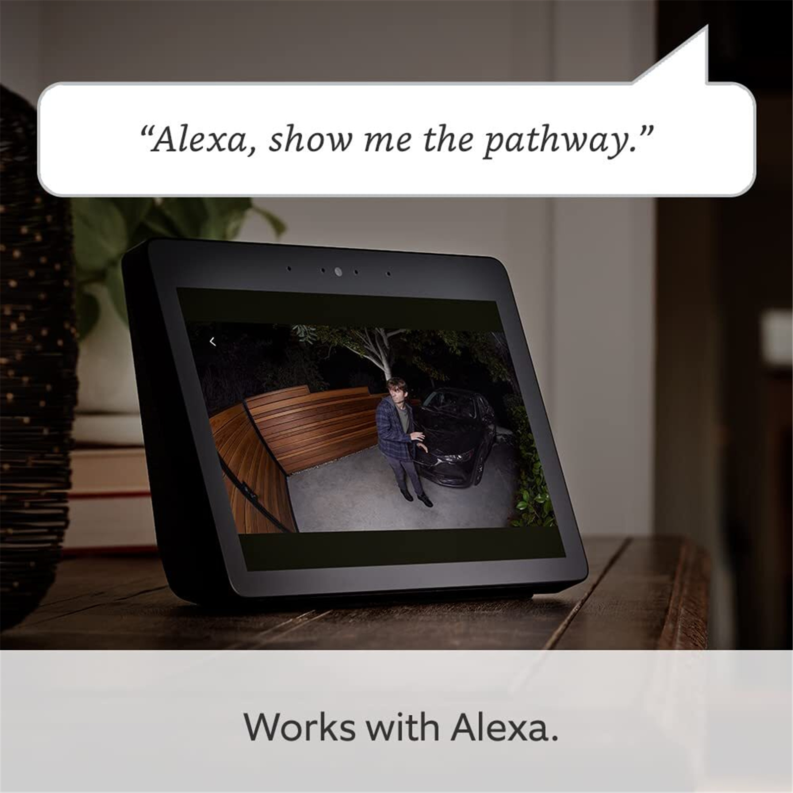 - Pair with a Ring Chime to hear audio notifications in your home, and add voice commands with a compatible Alexa-enabled device.