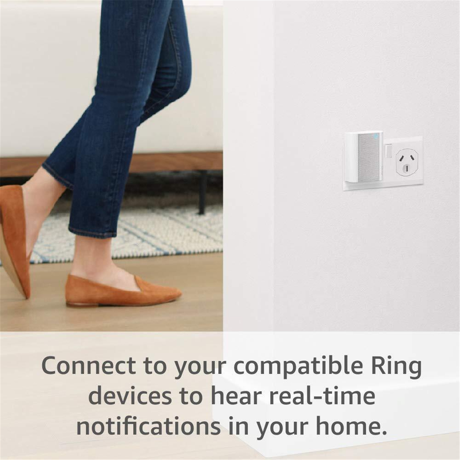 Ring Chime connects to all your Ring Video Doorbells and Cams so you can hear real-time notifications anywhere in your home. Plus, the sleek design blends right into any room.