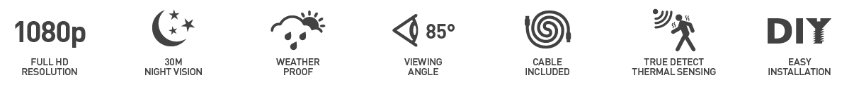 The camera features a True Detect PIR sensor that triggers auto recording & push notifications when it senses heat, so it'll only record relevant events. Warm objects, like people & cars, are more relevant for security.