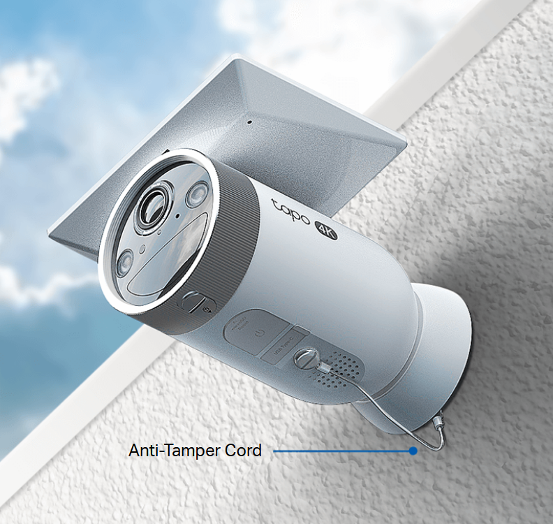 Tapo C465's anti-tamper cord and built-in alarm keeps your camera secure. If an intruder attempts to swipe your camera, the anti-tamper cord will ensure it remains in place while a loud siren sounds to alert you.
