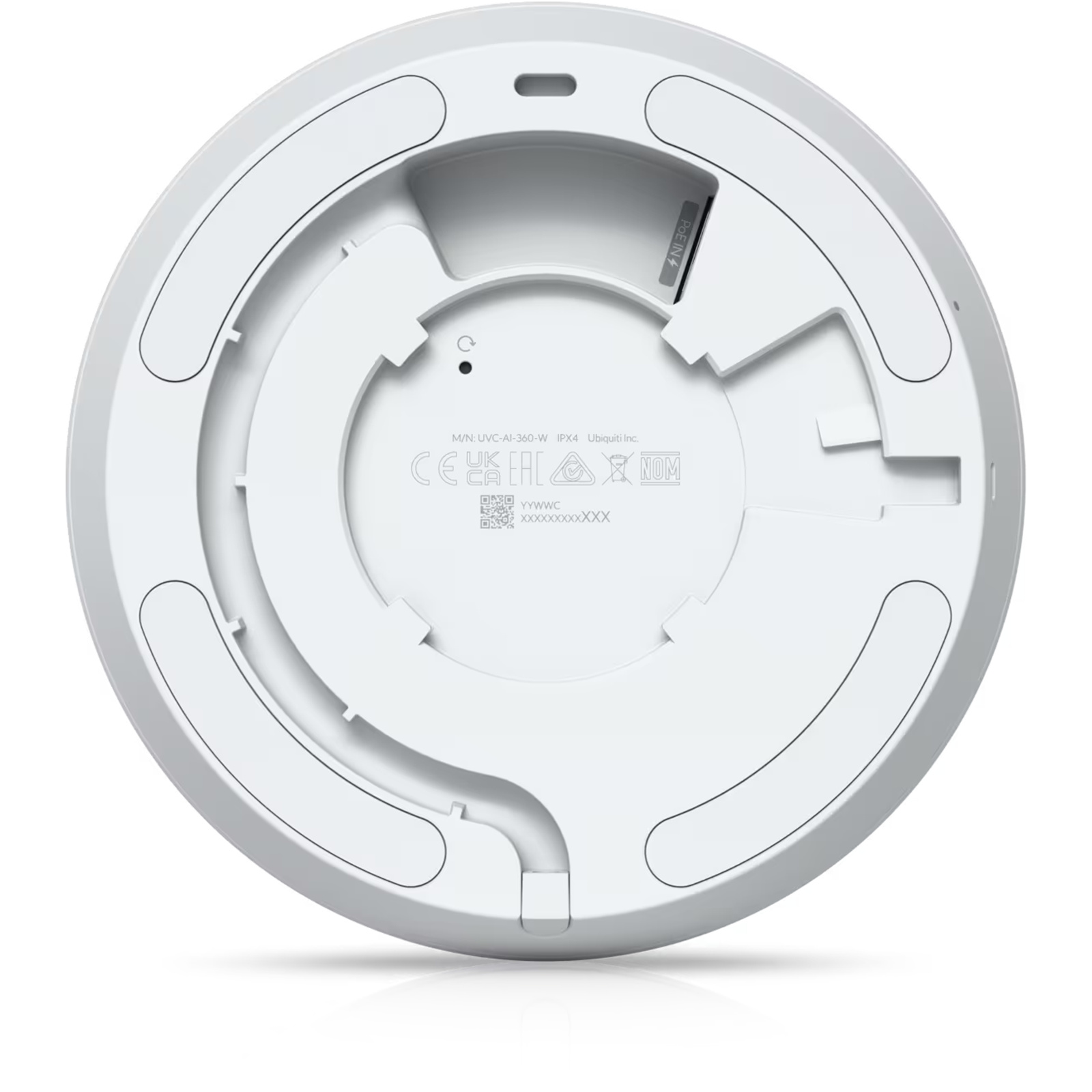 Ubiquiti UniFi Protect UVC-AI-360 4MP/2K 360 Fisheye PoE Camera (White) with Enhanced AI Vision 2K 30FPS / Viewing Angle - 360 Degree / Two-Way Audio / IPX4 & IK08