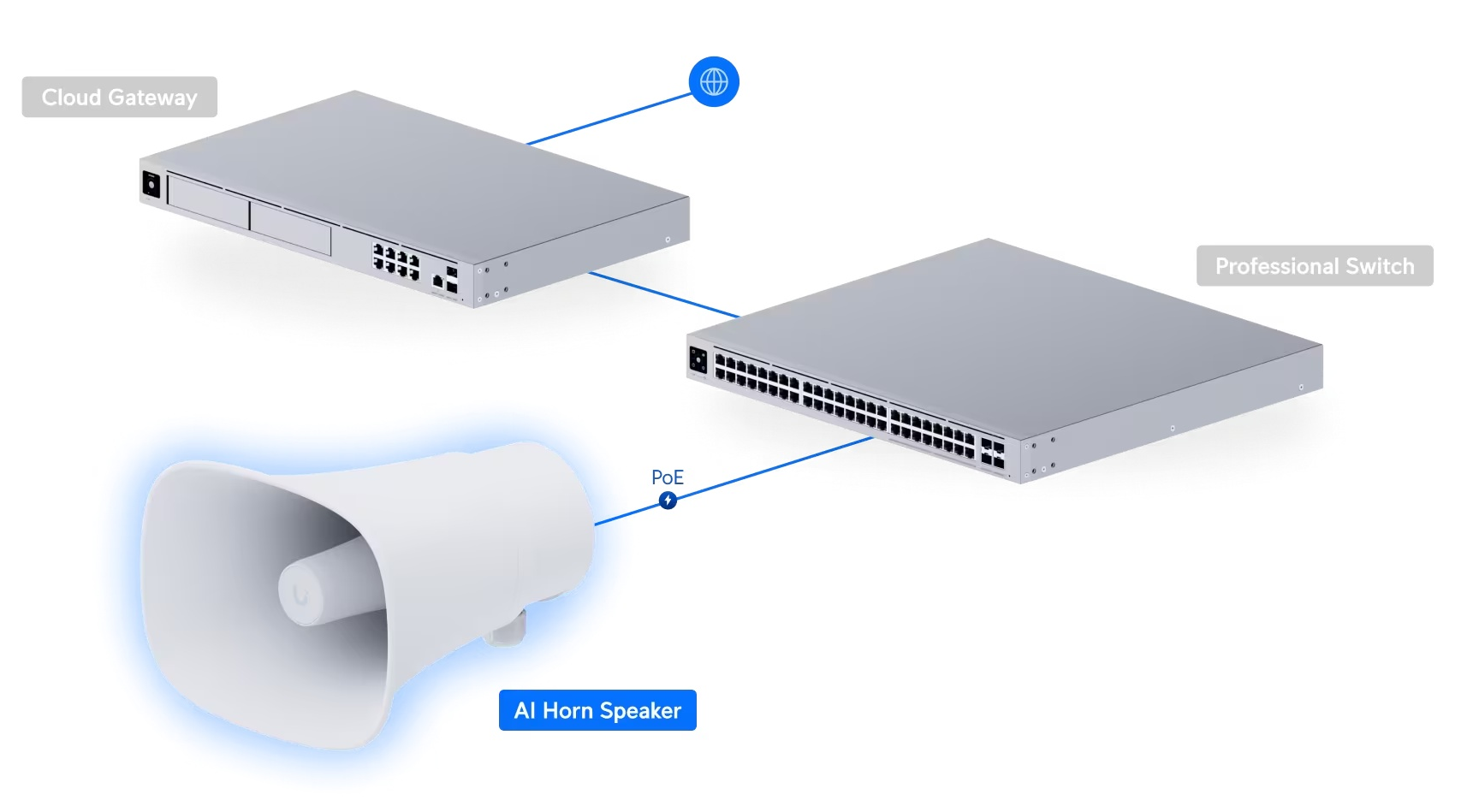 The all new Ubiquiti UniFi AI Horn Speaker, supporting text to speech deterrents, pre-recorded voice messages, or even Edge AI powered commentary.