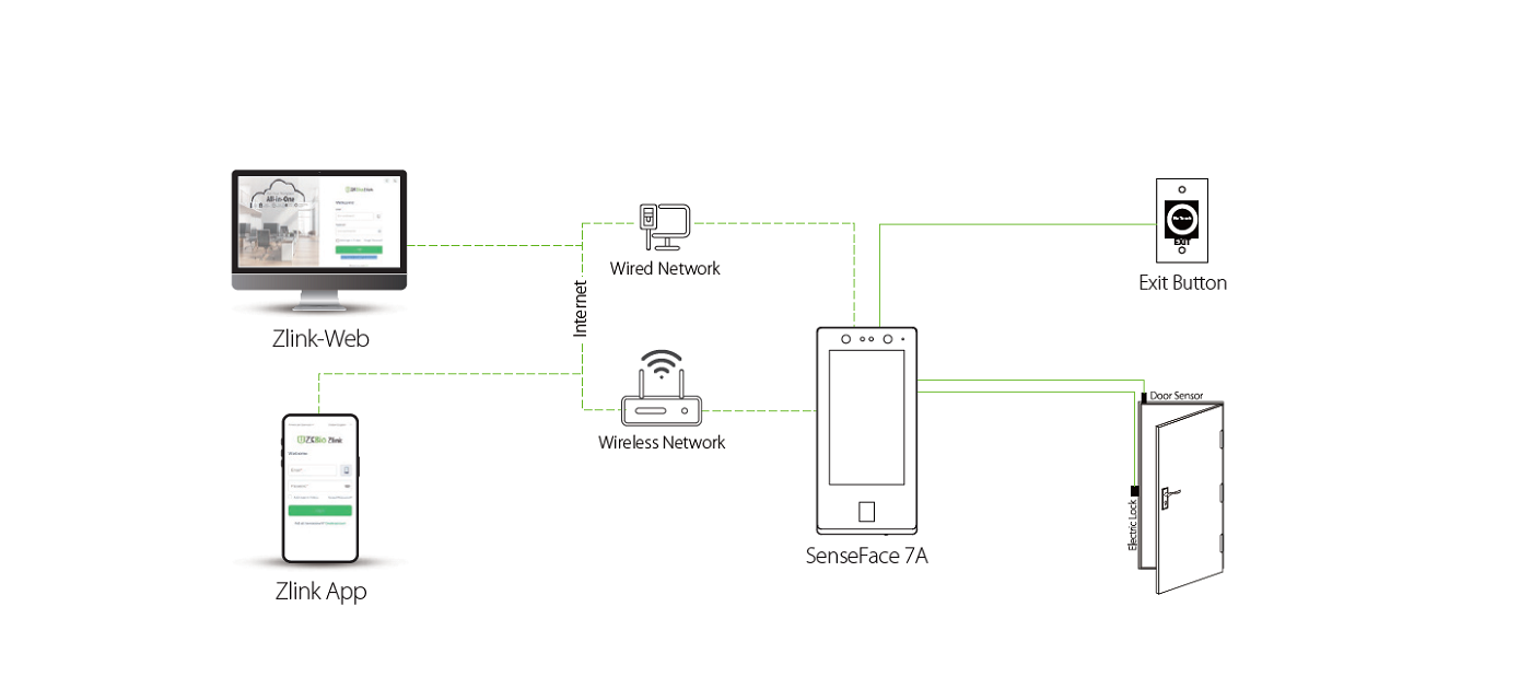 Besides, SenseFace 7A supports multiple communication protocols, Its firmware has AC push and can convert to TA push and it is compatible with various AC or TA software. It can change to BEST protocol to link with ZKBio Zlink (AC module).
