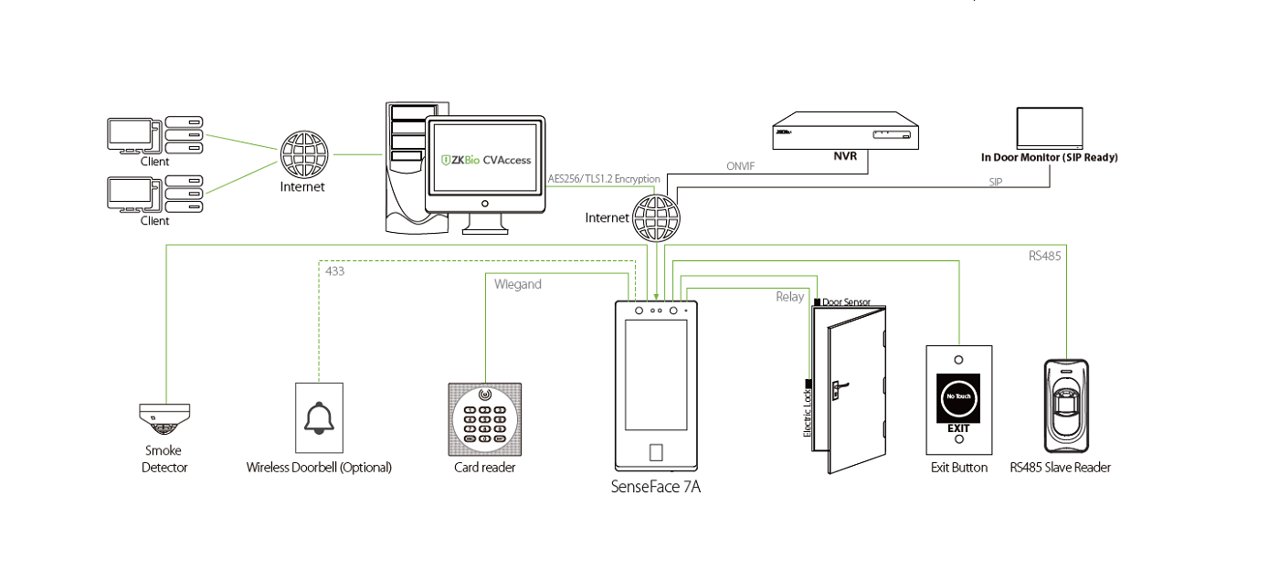SenseFace 7A is an access control terminal featuring a video intercom function and supports ONVIF protocol. It fully improves the video intercom experience and can be compatible with video intercom indoor unit with SIP protocol (Version 2.0).