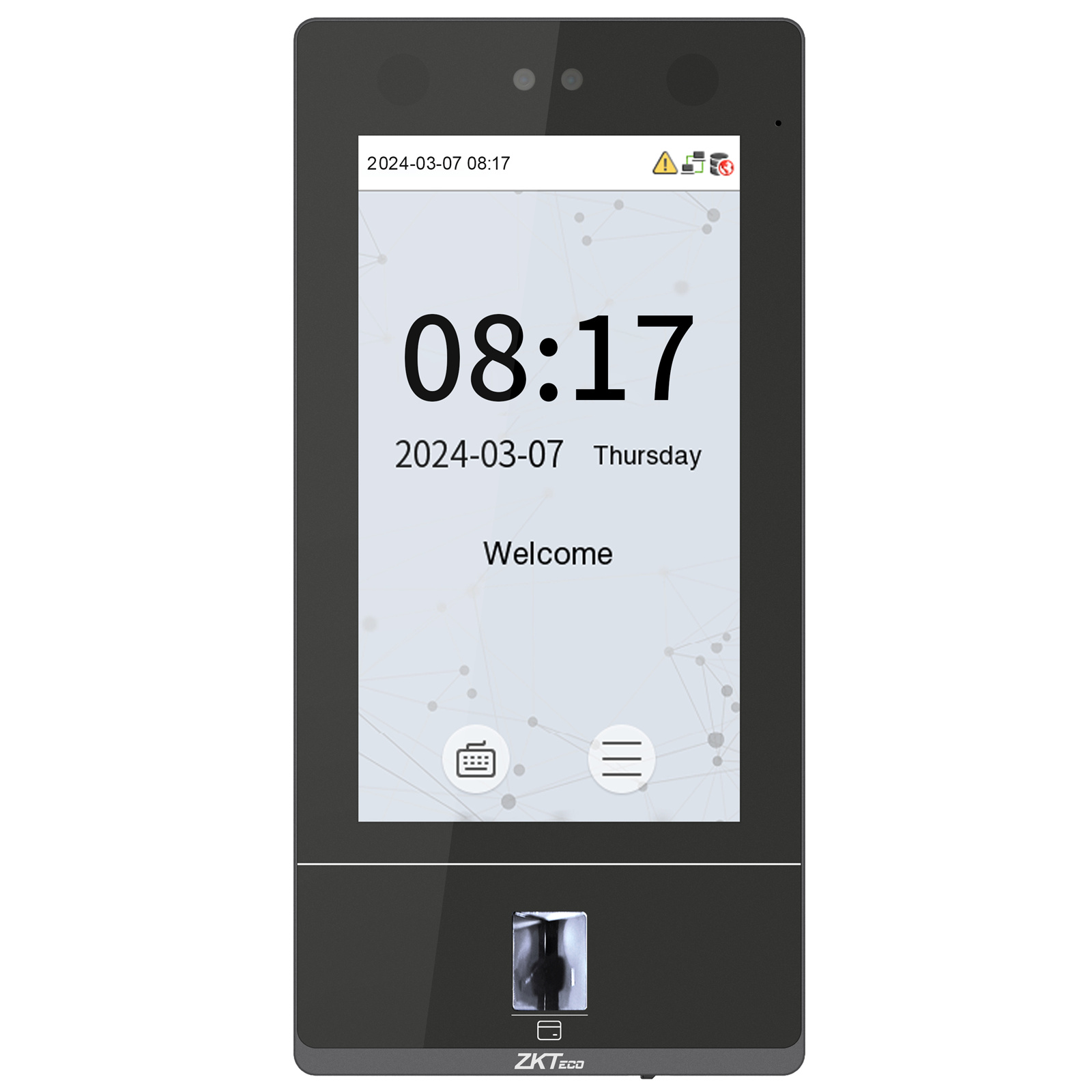 SenseFace 7A adopts the latest intelligent engineering facial authentication and in-glass fingerprint technology. It supports fingerprint, facial, card authentication with large capacity and speedy authentication, adopts ultimate antispoofing algorithm for facial authentication against almost all types of fake photos and video attacks which offering secure biometric authentication.