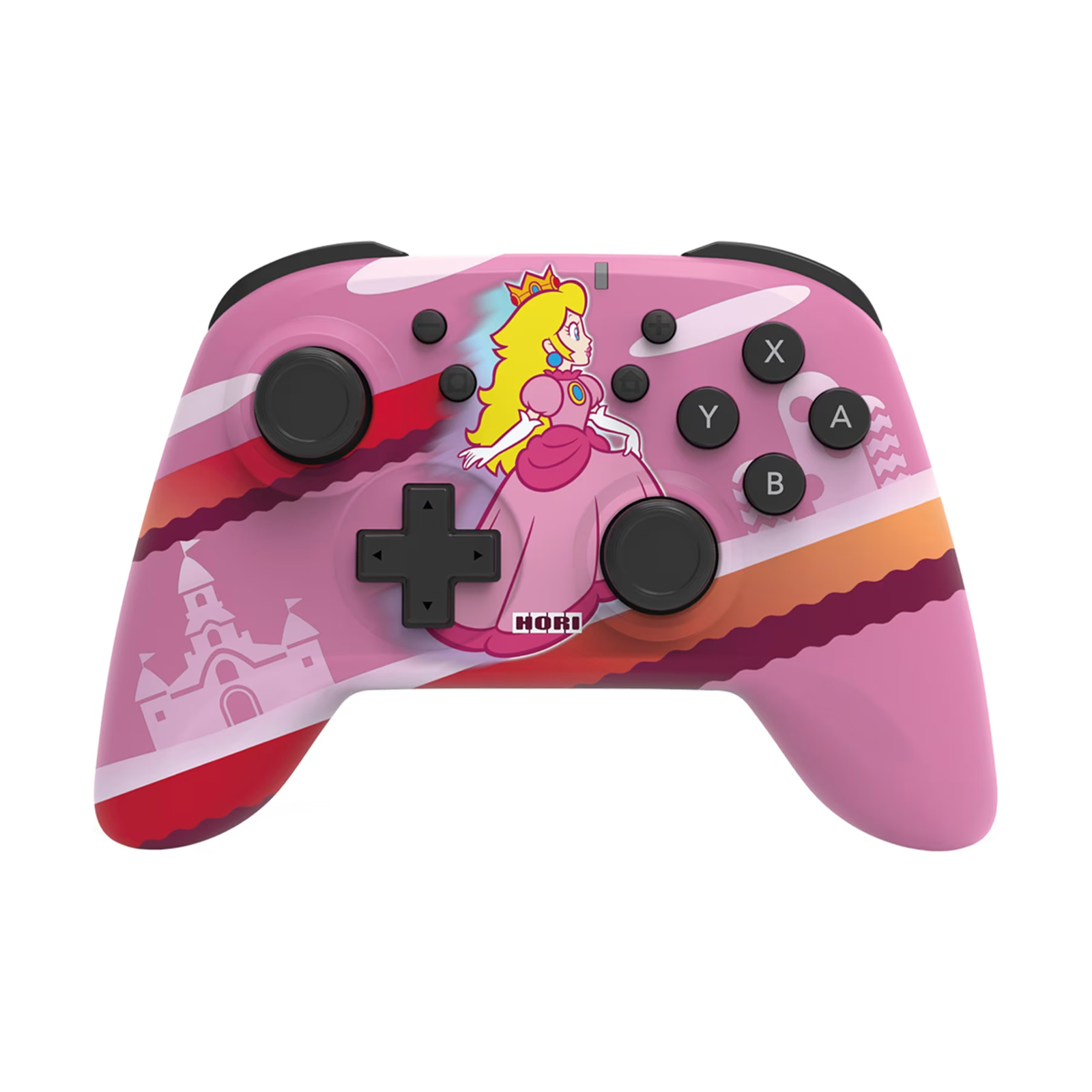 Protect the Mushroom Kingdom with everyone's favorite princess in pink! Introducing the new Princess Peach Nintendo Switch Wireless HORIPAD. The built in rechargeable lithium-ion battery and Bluetooth wireless technology gives you freedom with a 10m range and up to 15 hours of battery life. Lightweight yet solid, the snappy and responsive Wireless HORIPAD is equipped with an accelerometer and gyroscope for full motion control, making it the go-to choice for Nintendo Switch gamers. Charges with included USB-C cable.