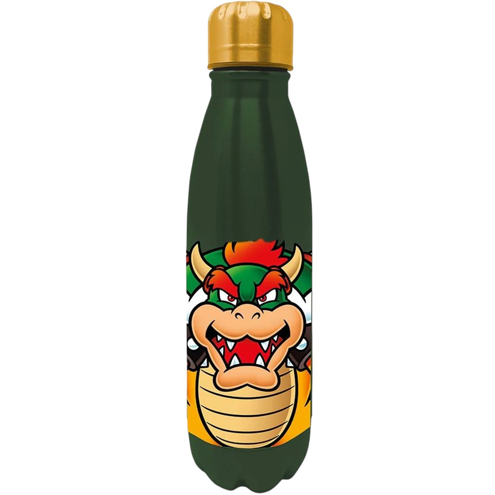 Its design is bold and instantly recognizable: a striking green body accented with Bowser's classic colours-yellow, green, and red spikes-featuring a vivid graphic of the King of the Koopas himself. This villainous motif adds a playful, rebellious twist to the usual hydration accessory, making it a standout piece for collectors or casual fans alike.