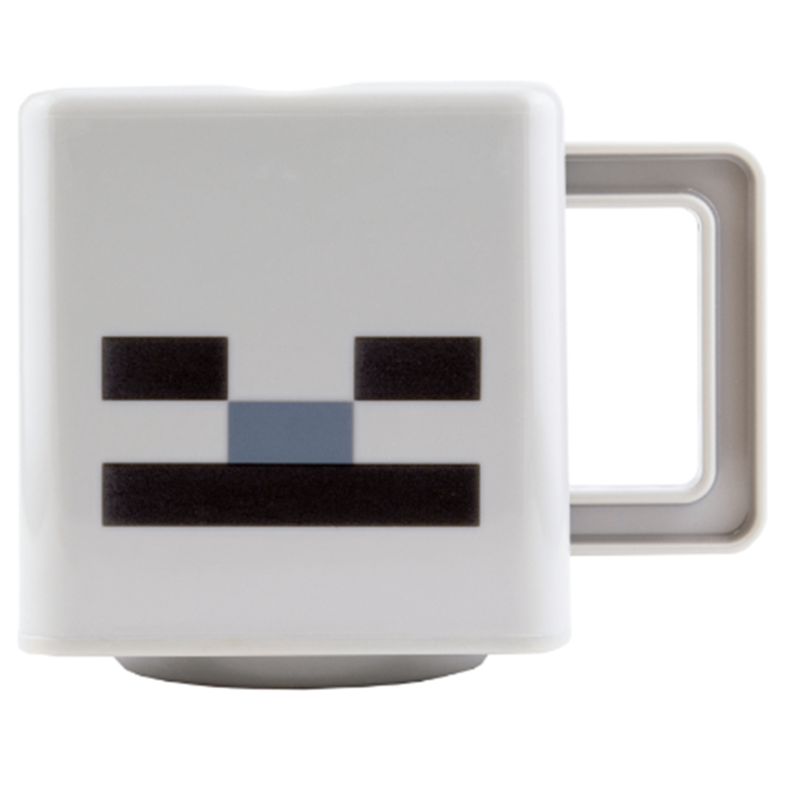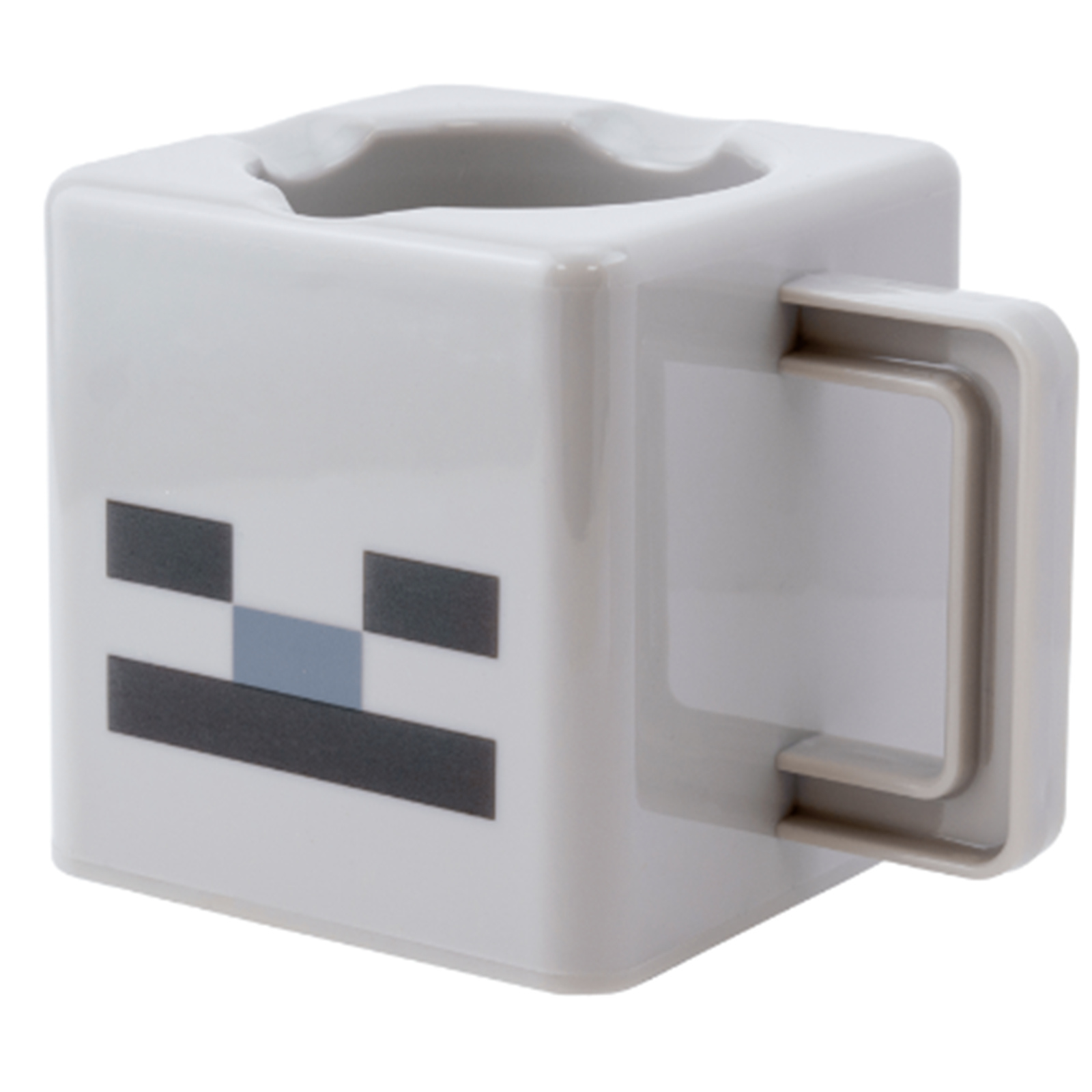 Designed exactly to the blocky aesthetic of the worldwide mega-hit game Minecraft, this block-shaped mug is made to look exactly like a skeleton face, one of the most iconic enemies found in the world of Minecraft. The ghostly grey colour and scary skeleton face make this detailed mug stand out from the crowd to show everyone your love for Minecraft.