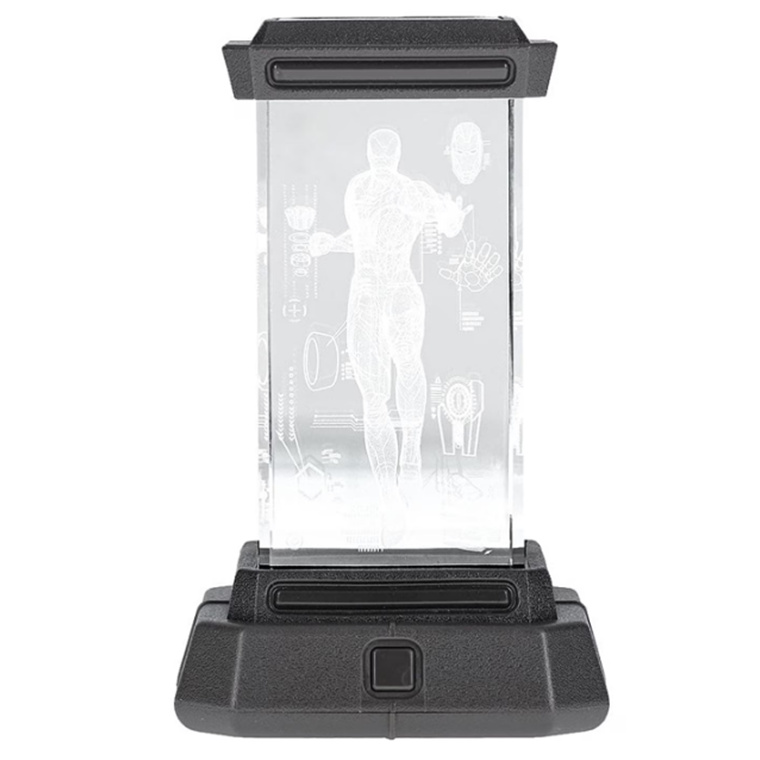 Light up your home with this Iron Man Holographic Light. The 12cm (4.7" ) tall light contains a 3D laser etched crystal model of Iron Man in his iconic armor surrounded by the suit's internal interface.