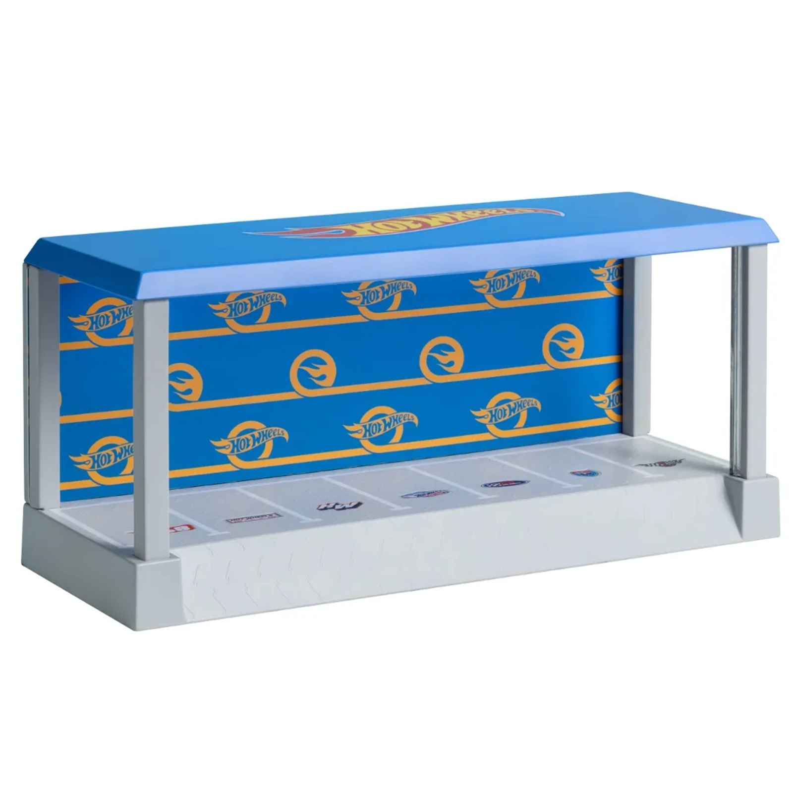 This 28.5cm (11.2") wide Garage Display Case Light is designed to showcase up to 7 Hot Wheels cars (not included). It features an entry ramp for easy placement and a double-sided background to customize your display. The open-sided case brings a fun, interactive touch to any toy car collection.