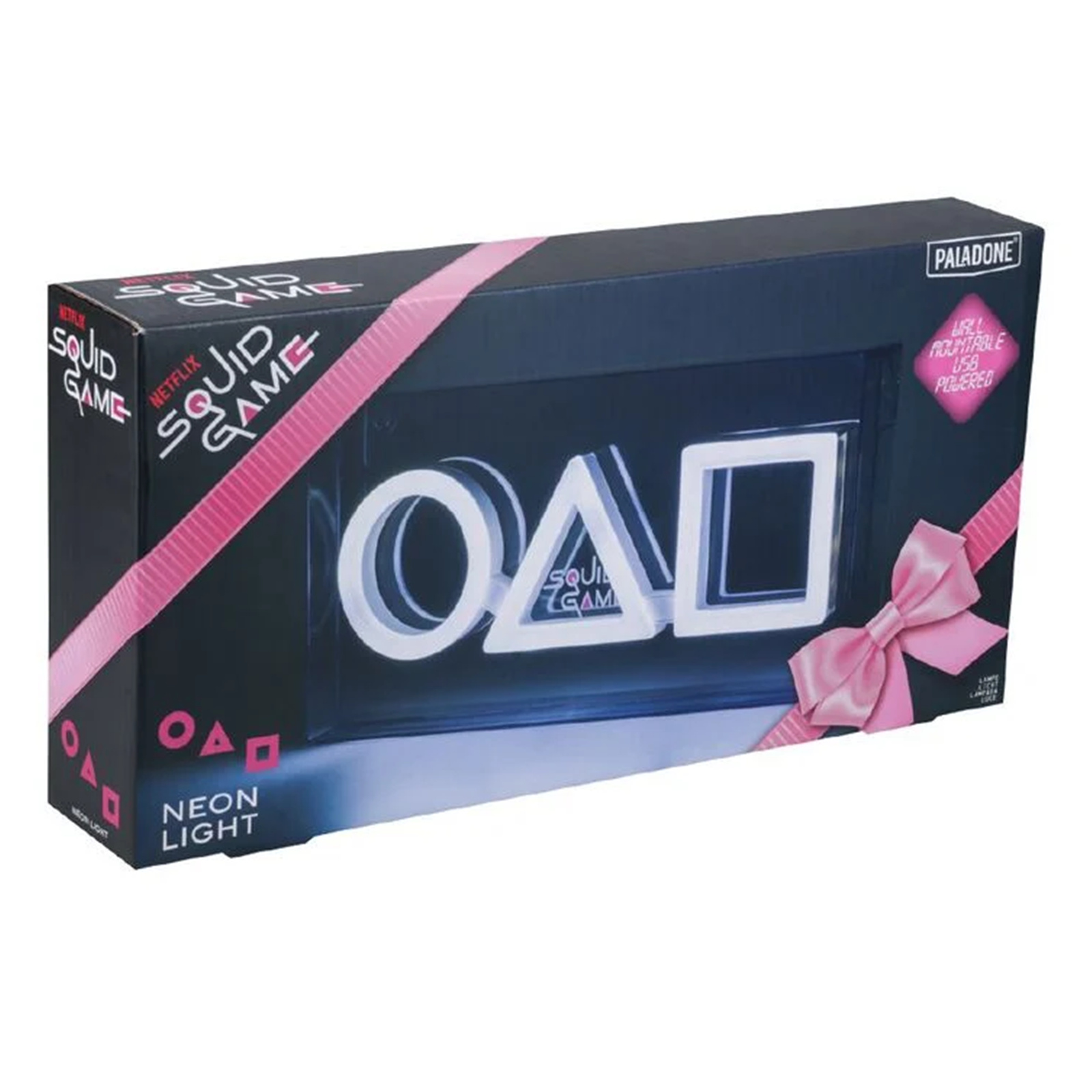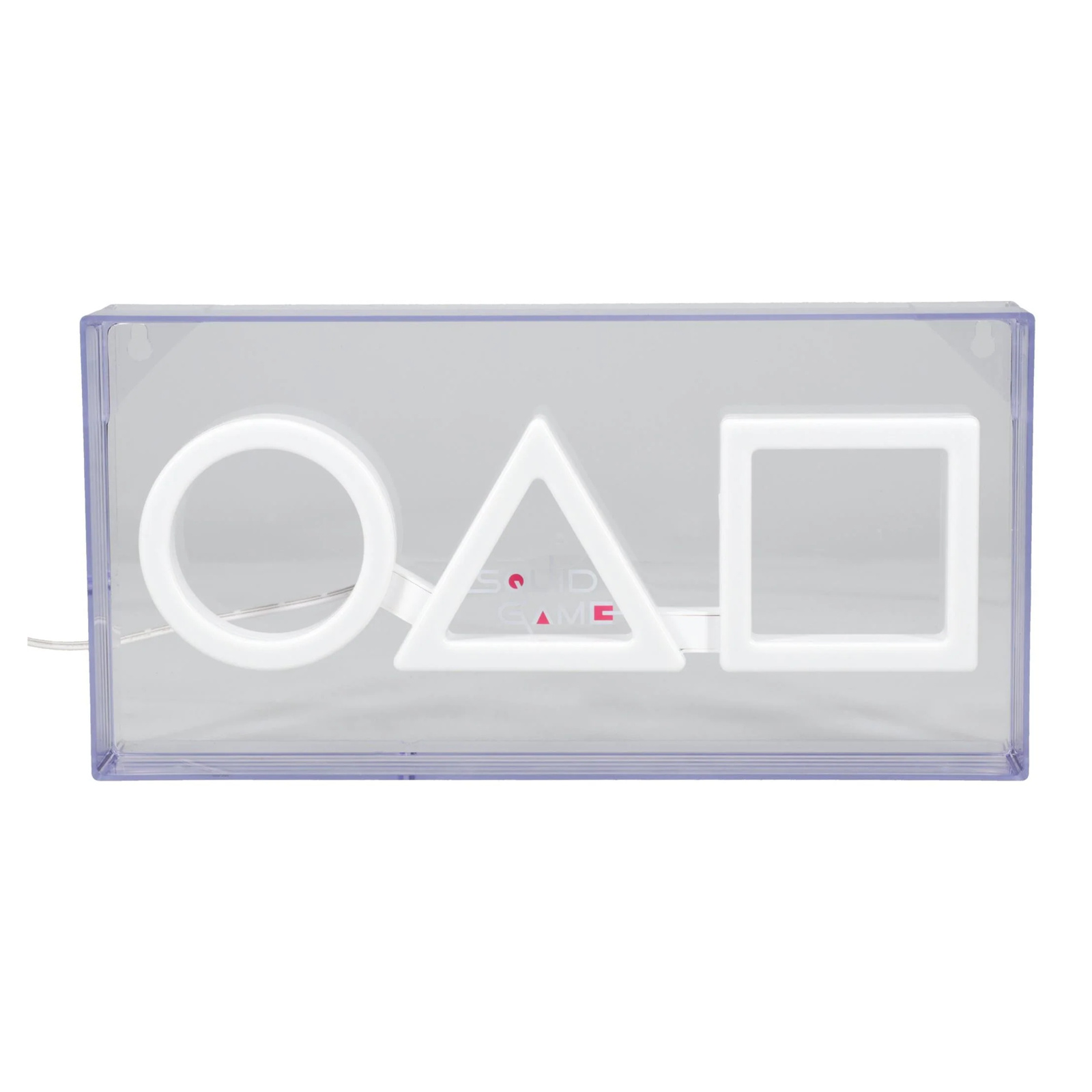 Brighten up your space with this awesome Squid Game Neon Light. The 15cm (5.9") tall and 30cm (11.8") wide LED neon light captures the iconic shapes featured throughout the survival competition. Whether it's mounted on a wall or placed on a shelf, it will showcase a piece of the nail-biting show.