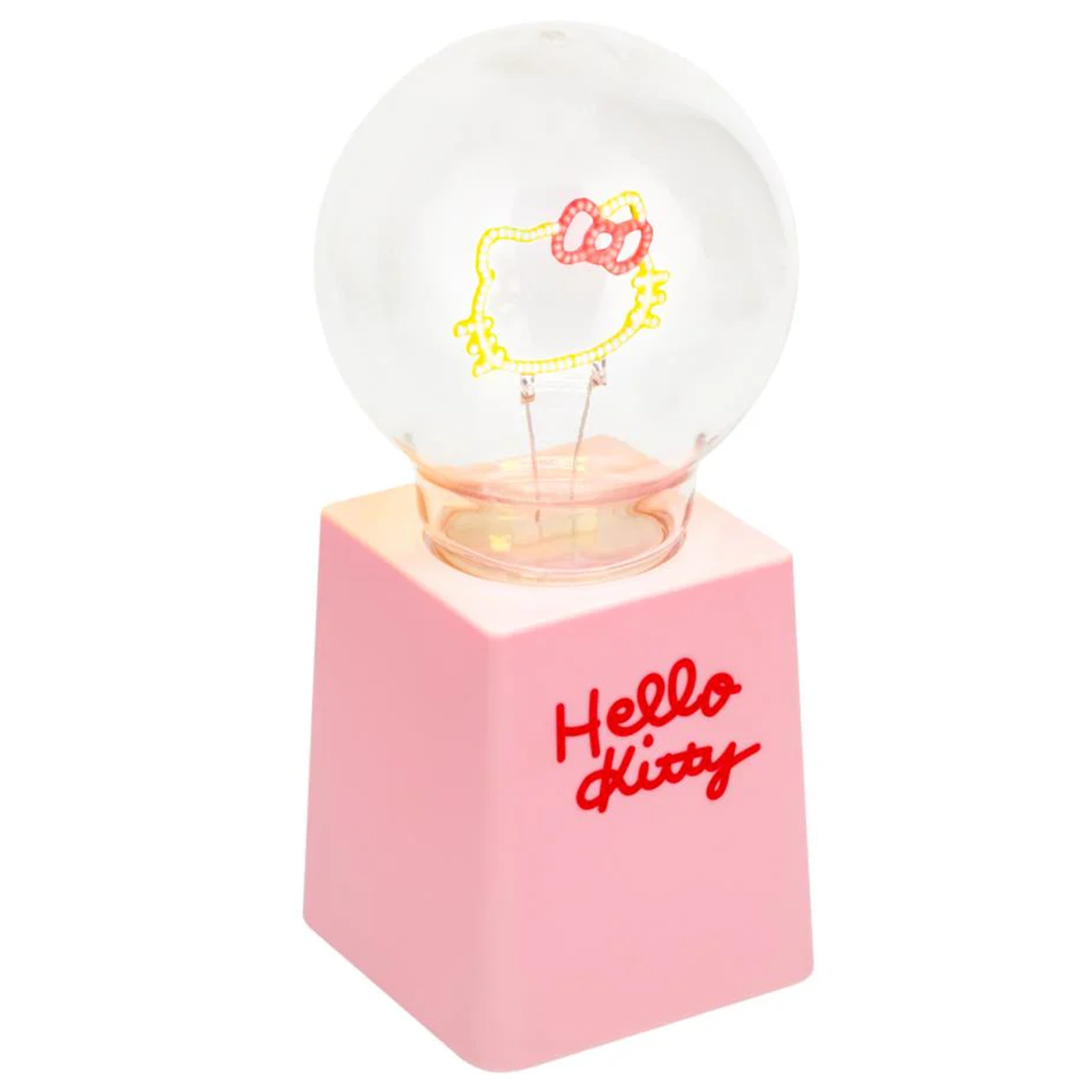 Standing 20cm (7.9") tall with a sturdy plastic base, this lamp features a decorative plastic bulb showcasing a Hello Kitty-shaped filament. When lit, it emits a soft pink glow that adds warmth and sweetness to any setting, perfect for creating a cozy atmosphere.