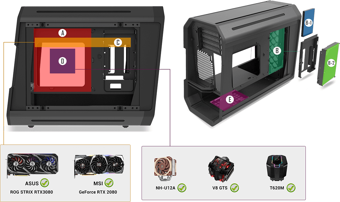 The Dark Cube features a slide-open case structure. Combined with Micro-ATX configurations, the metallic rails on the top and bottom will bring you the best PC-DIY experience than ever.