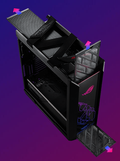 ROG Strix Helios is designed with multiple easy installation mechanisms to provide the smoothest building experience, even for DIY novices. Keeping your rig clean is made easy with built-in dust filters and easy access to all areas.