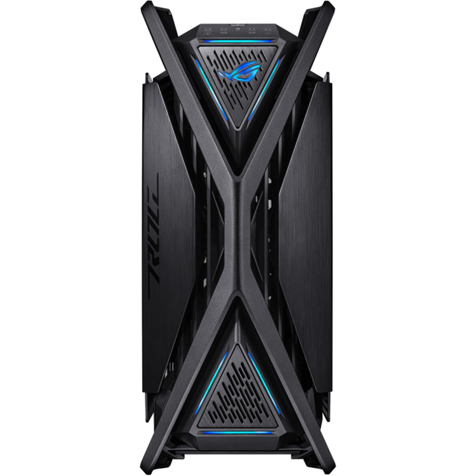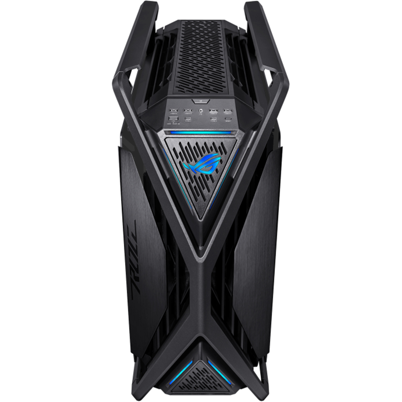The ROG Hyperion frame is constructed of rugged aluminium alloys forged into a distinctive X that extends from the center of the chassis all the way out to its perimeter. It's rigid structure doubles up as carry handles capable of bearing up to 80 kg of hardware.